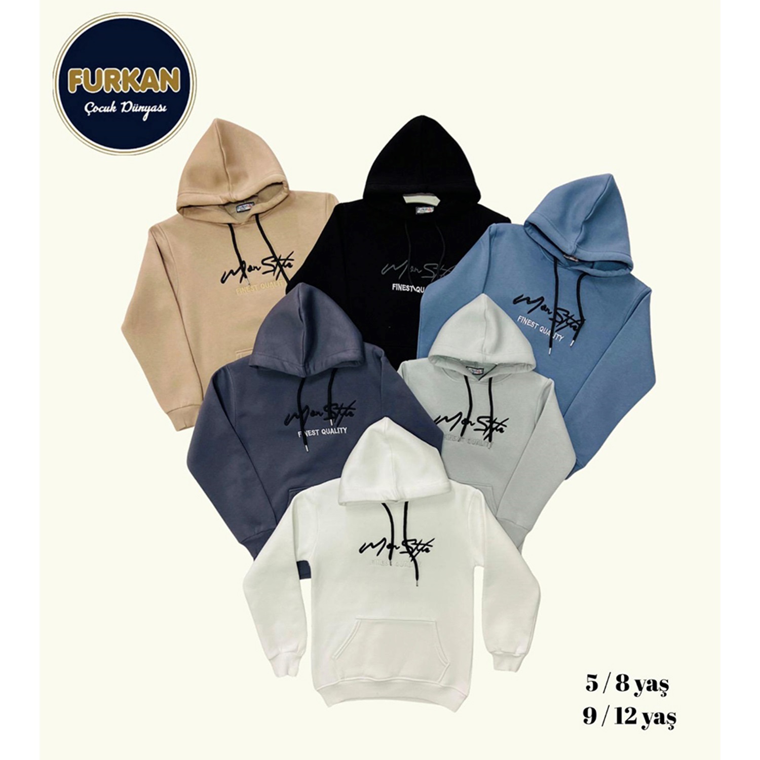 Furkan 8002 Erkek Çocuk 3 İplik Fınest Qualıty Nakışlı Kapşonlu Sweat 5-8 Yaş