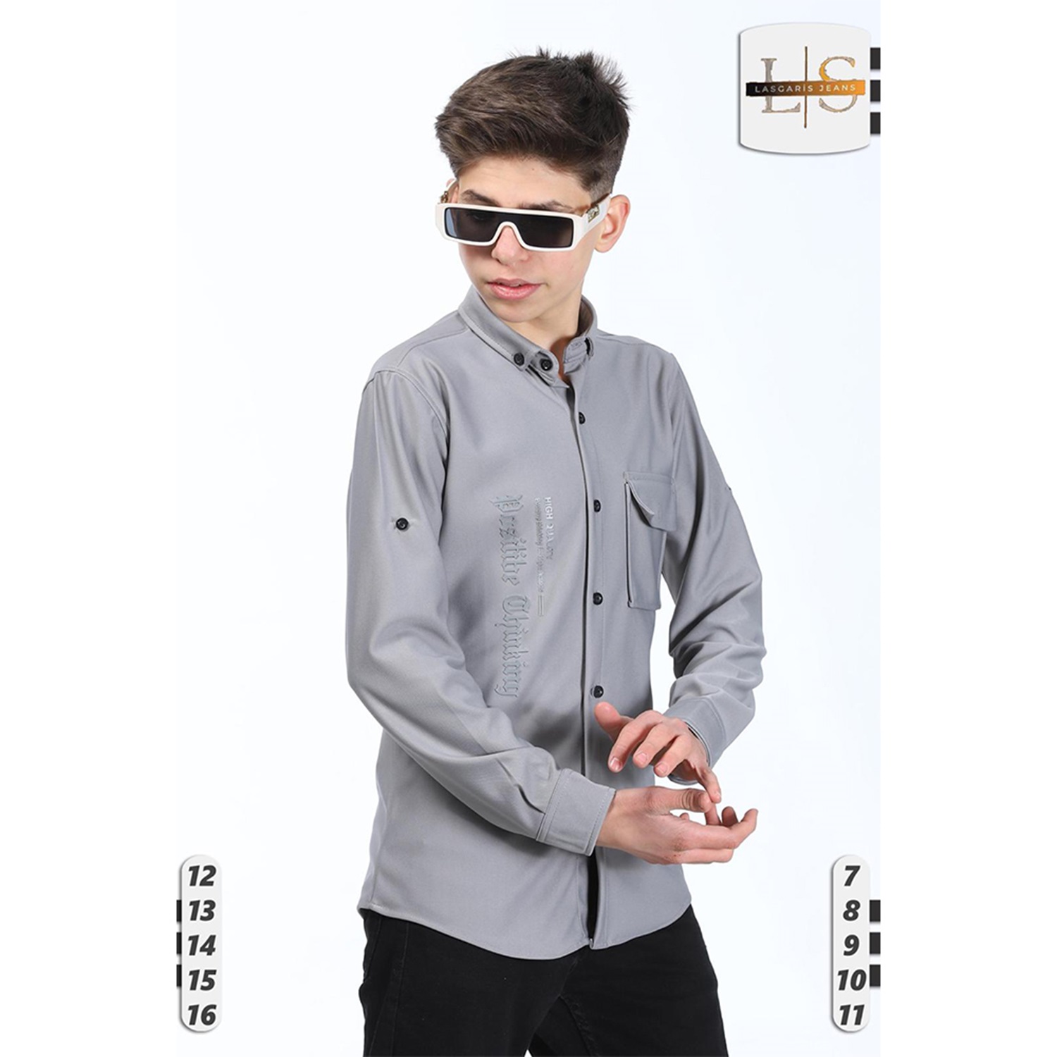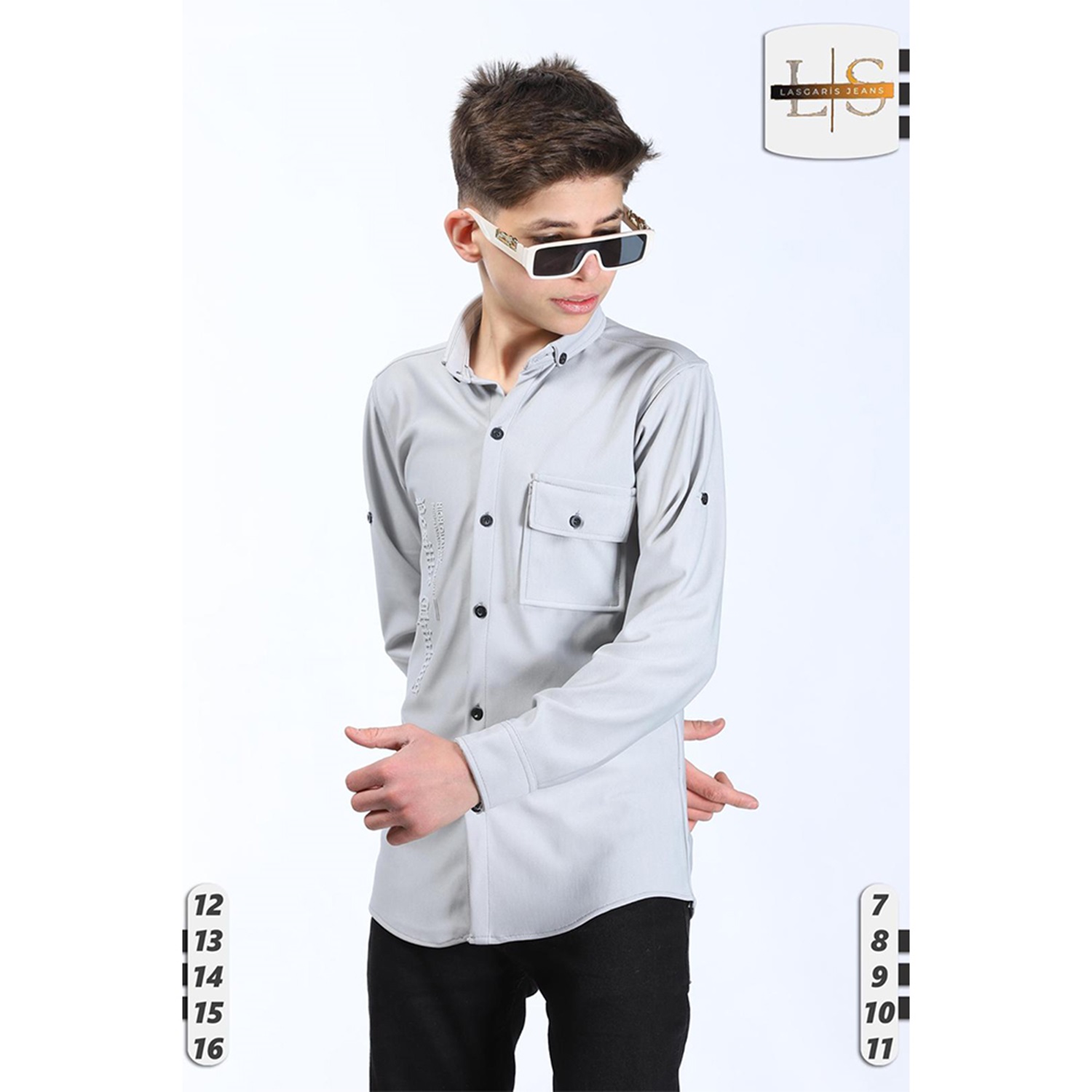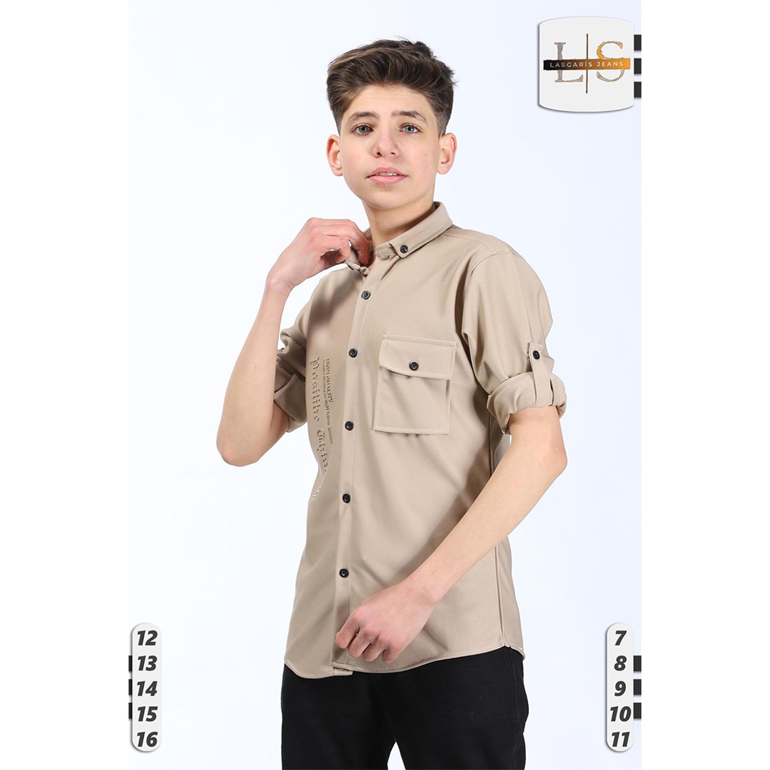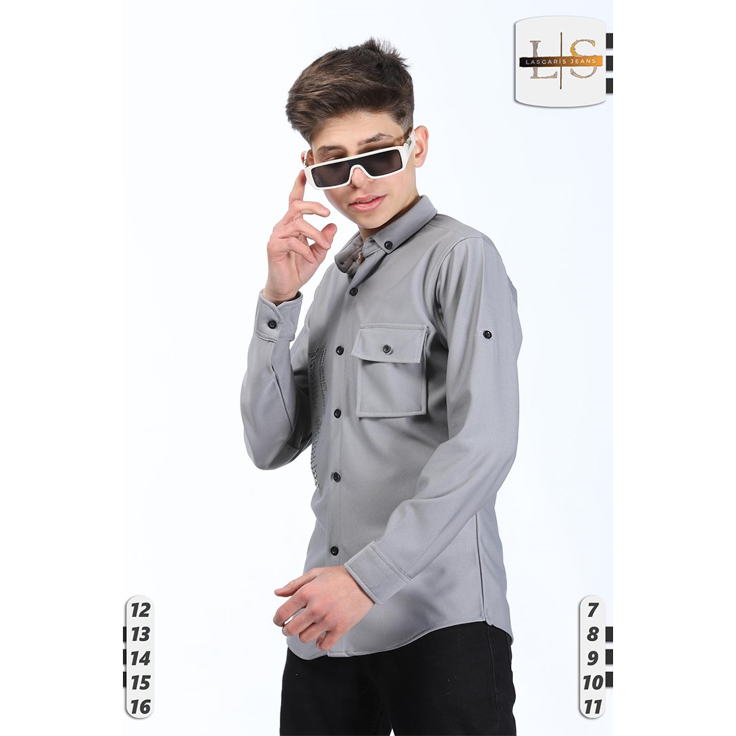 Lasgaris 1006 Erkek Çocuk Diagonel Enjeksiyon Baskılı Cepli Gömlek 12-16 Yaş