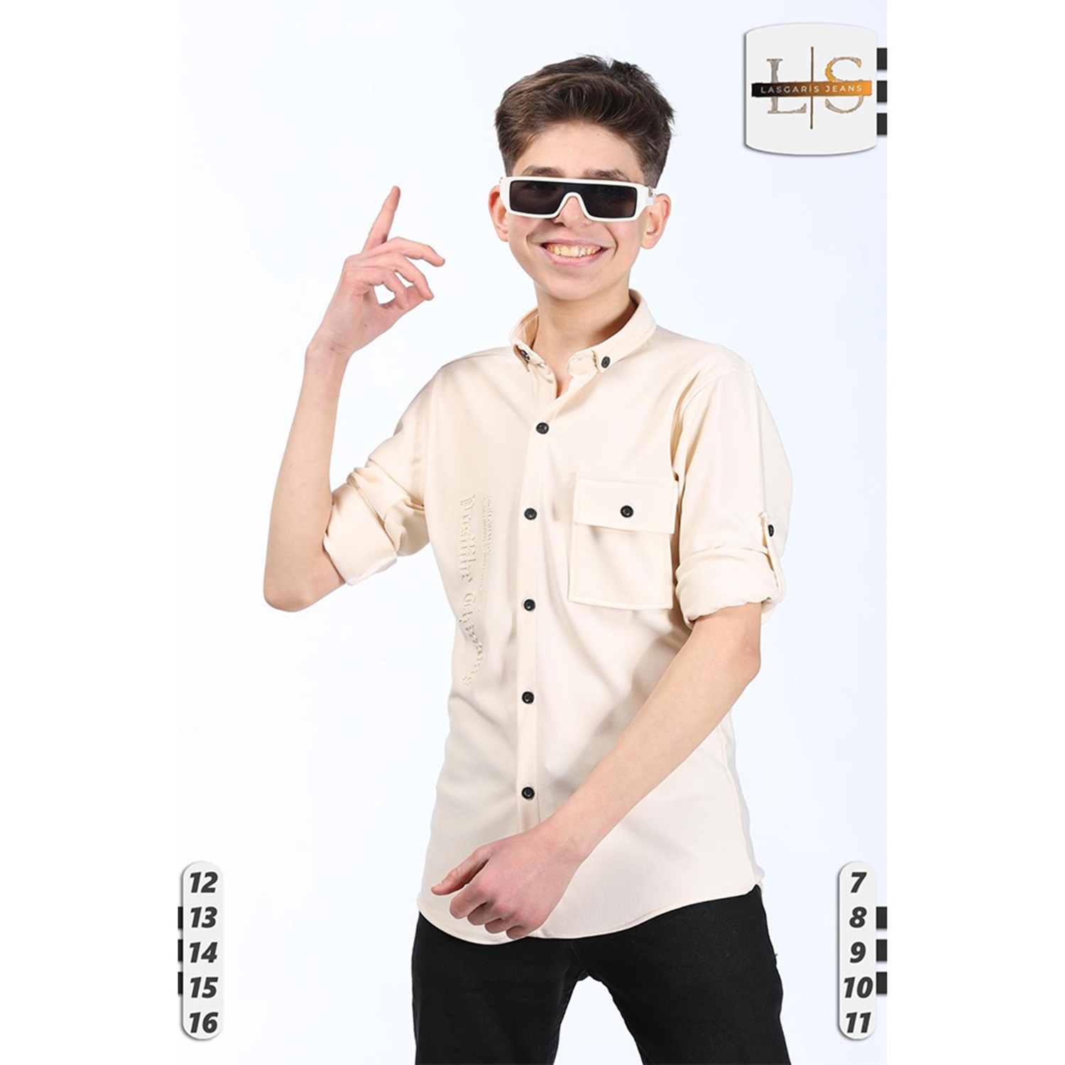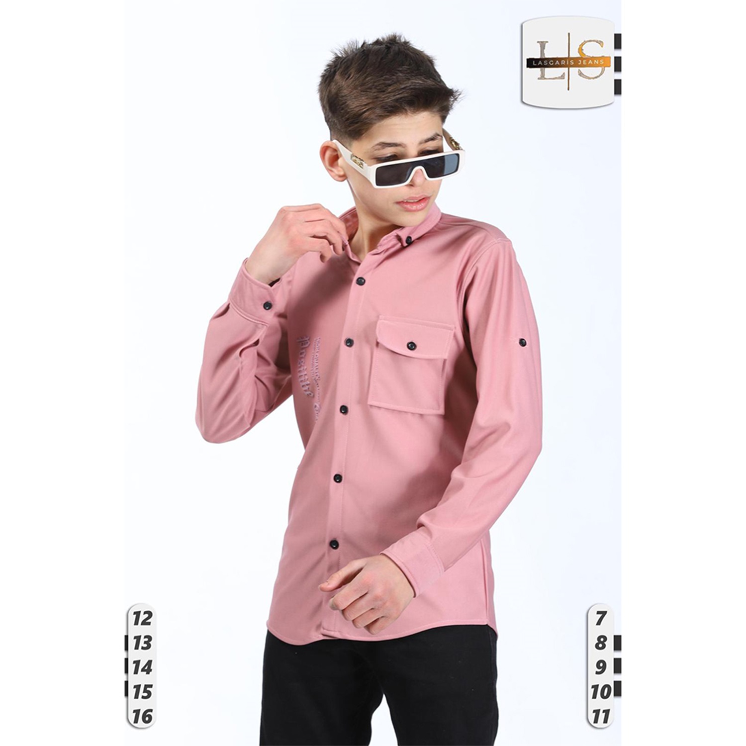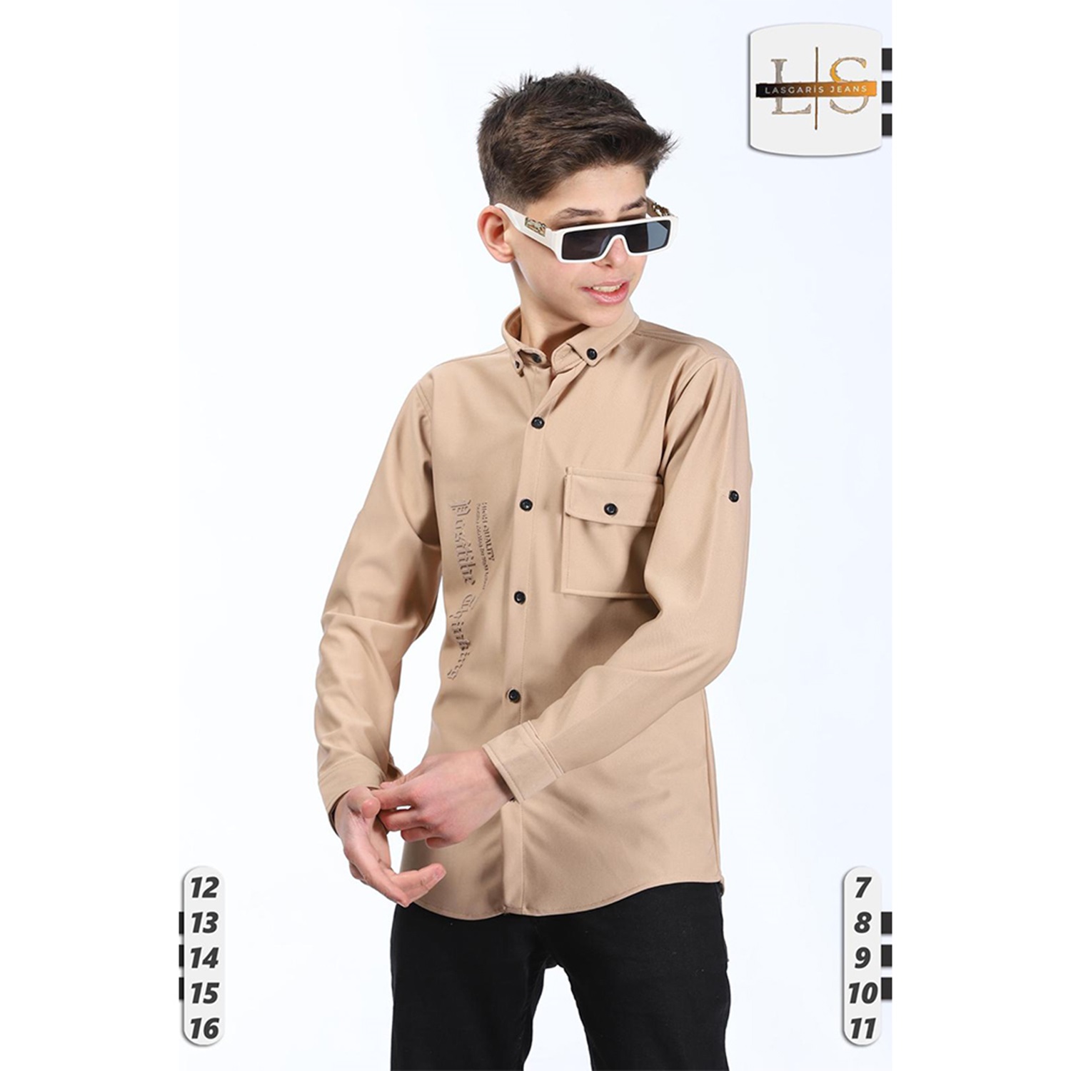 Lasgaris 1006 Erkek Çocuk Diagonel Enjeksiyon Baskılı Cepli Gömlek 12-16 Yaş