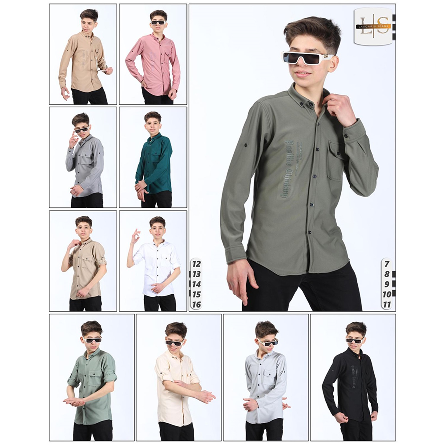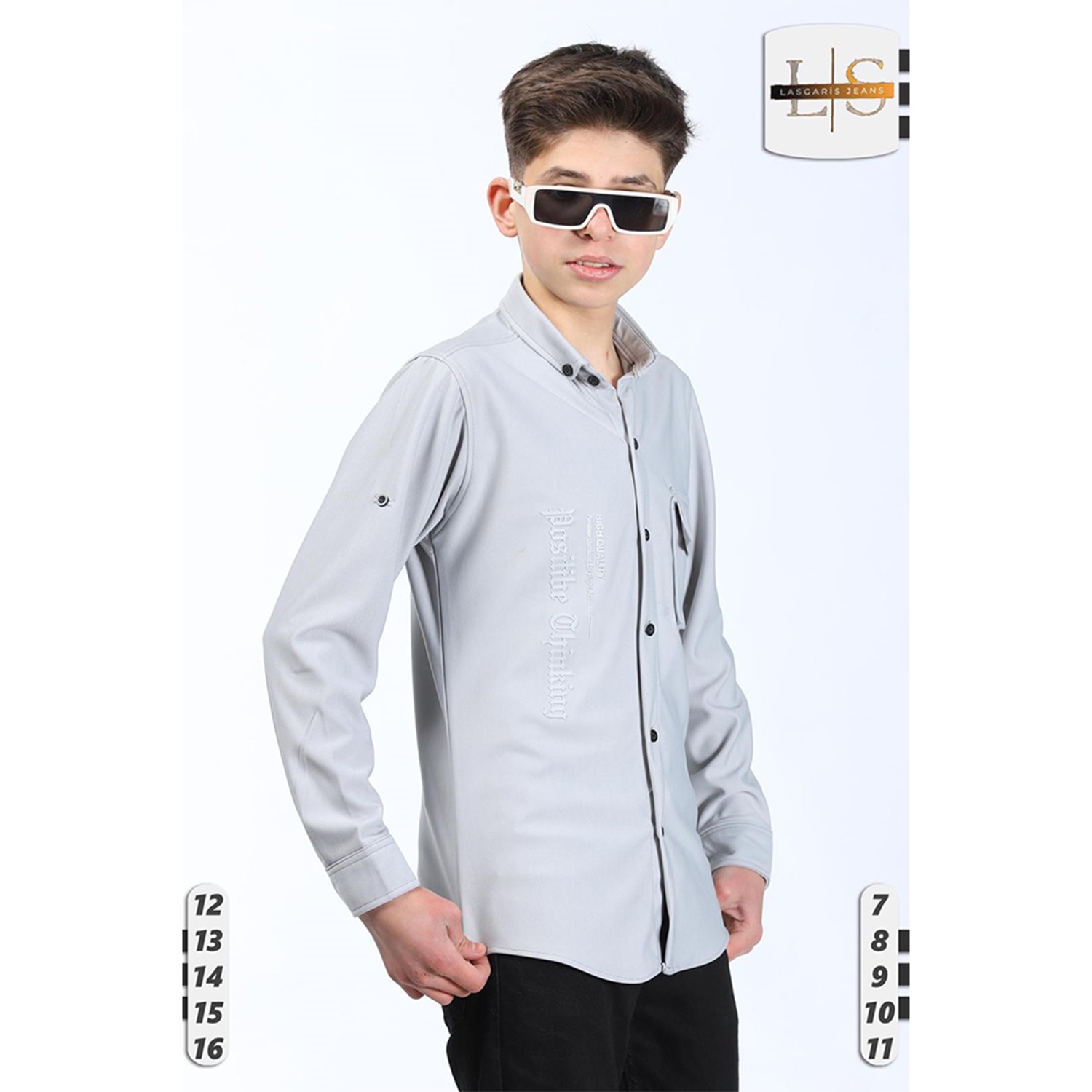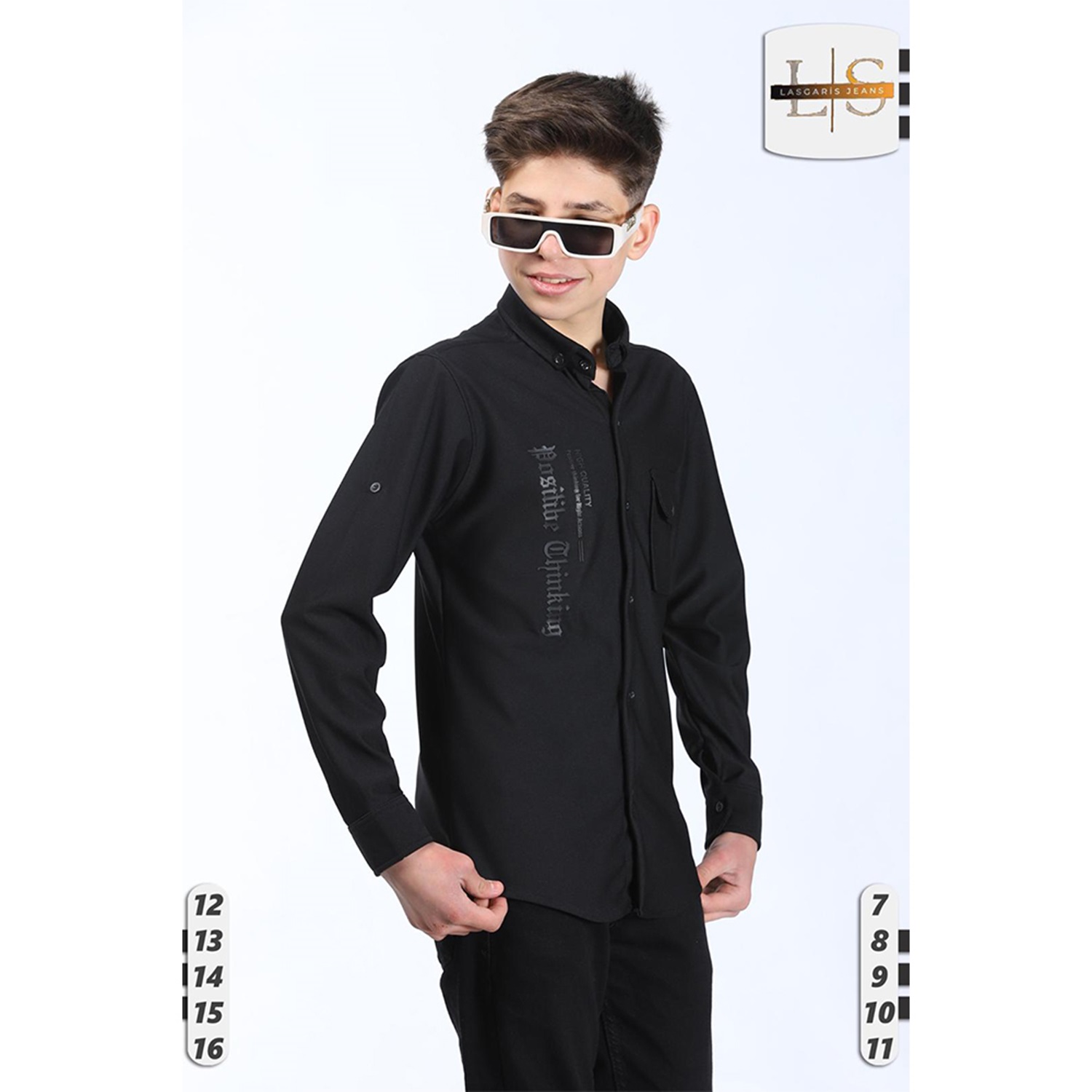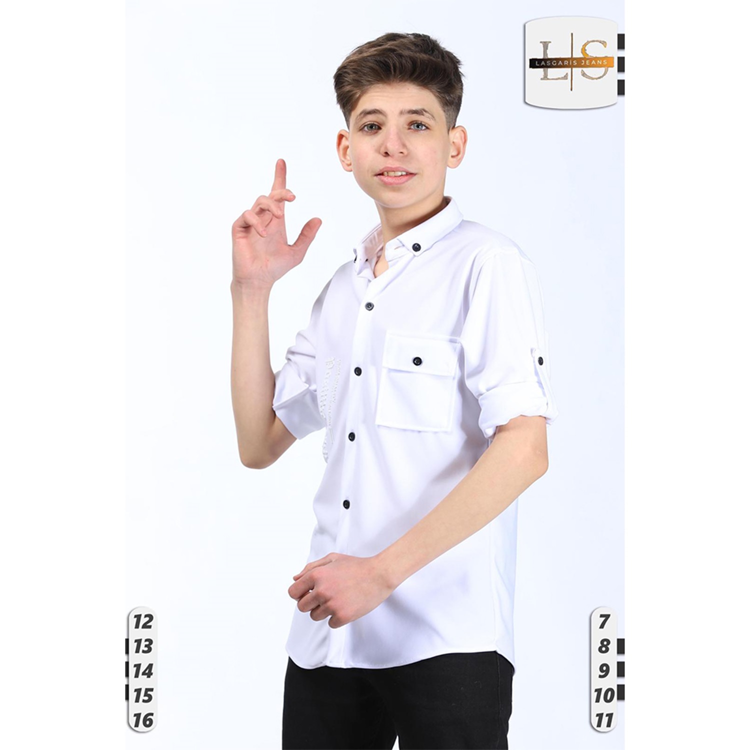 Lasgaris 1006 Erkek Çocuk Diagonel Enjeksiyon Baskılı Cepli Gömlek 12-16 Yaş
