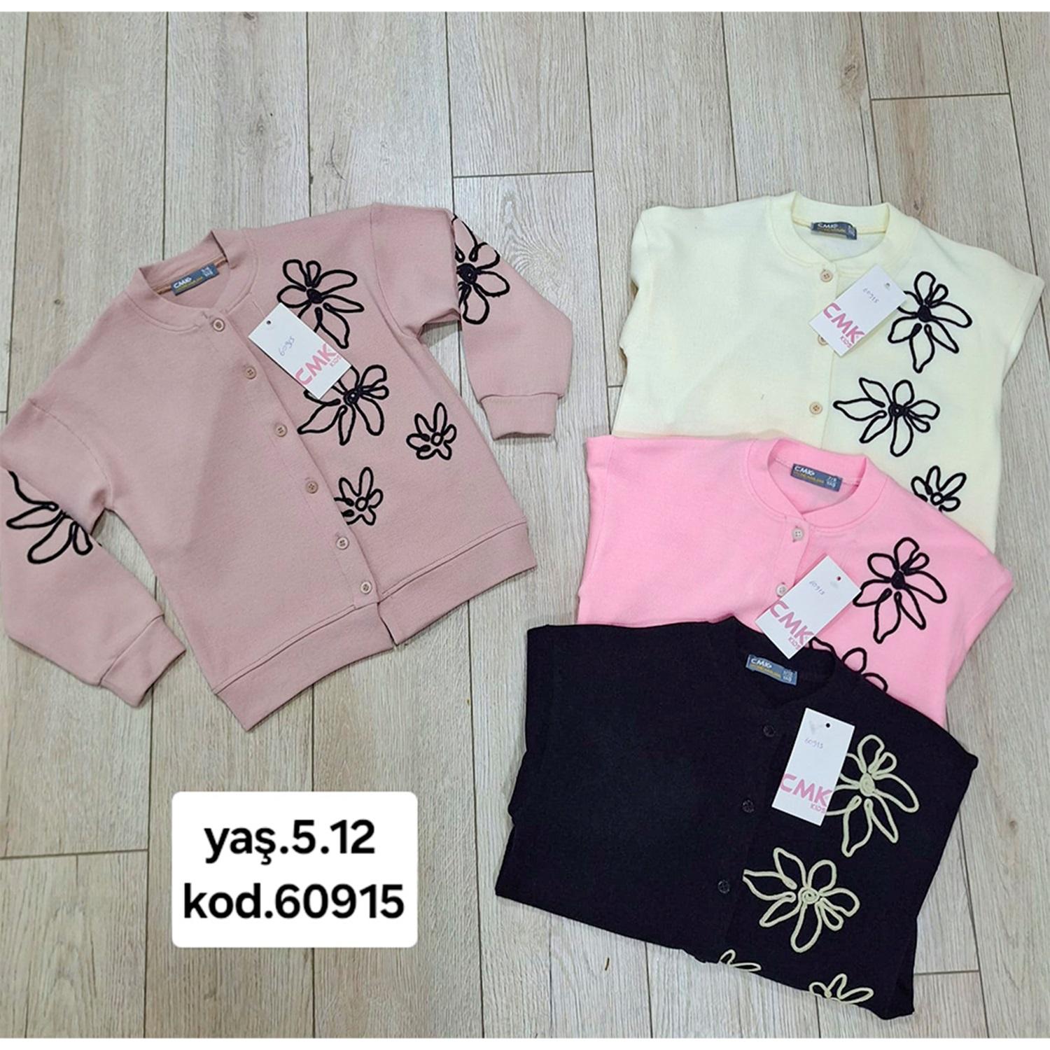 CMK KIDS 60915 Kız Çocuk İpli Çiçek Nakışlı Triko Düğmeli Hırka 5-12 Yaş