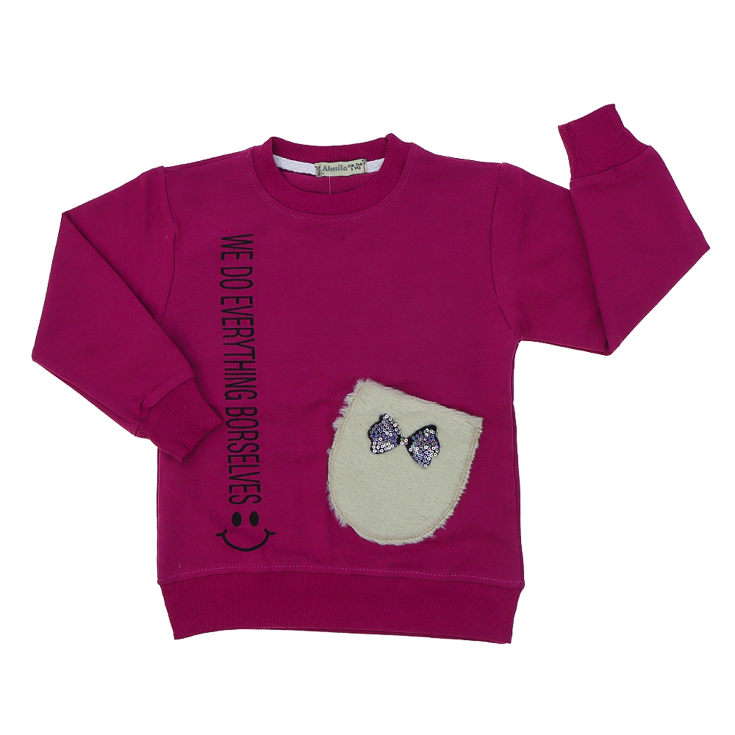 Almila 1119 Kız Çocuk Peluş Cep Modelli Penye Sıfır Yaka Sweat 5-8 Yaş - Somon
