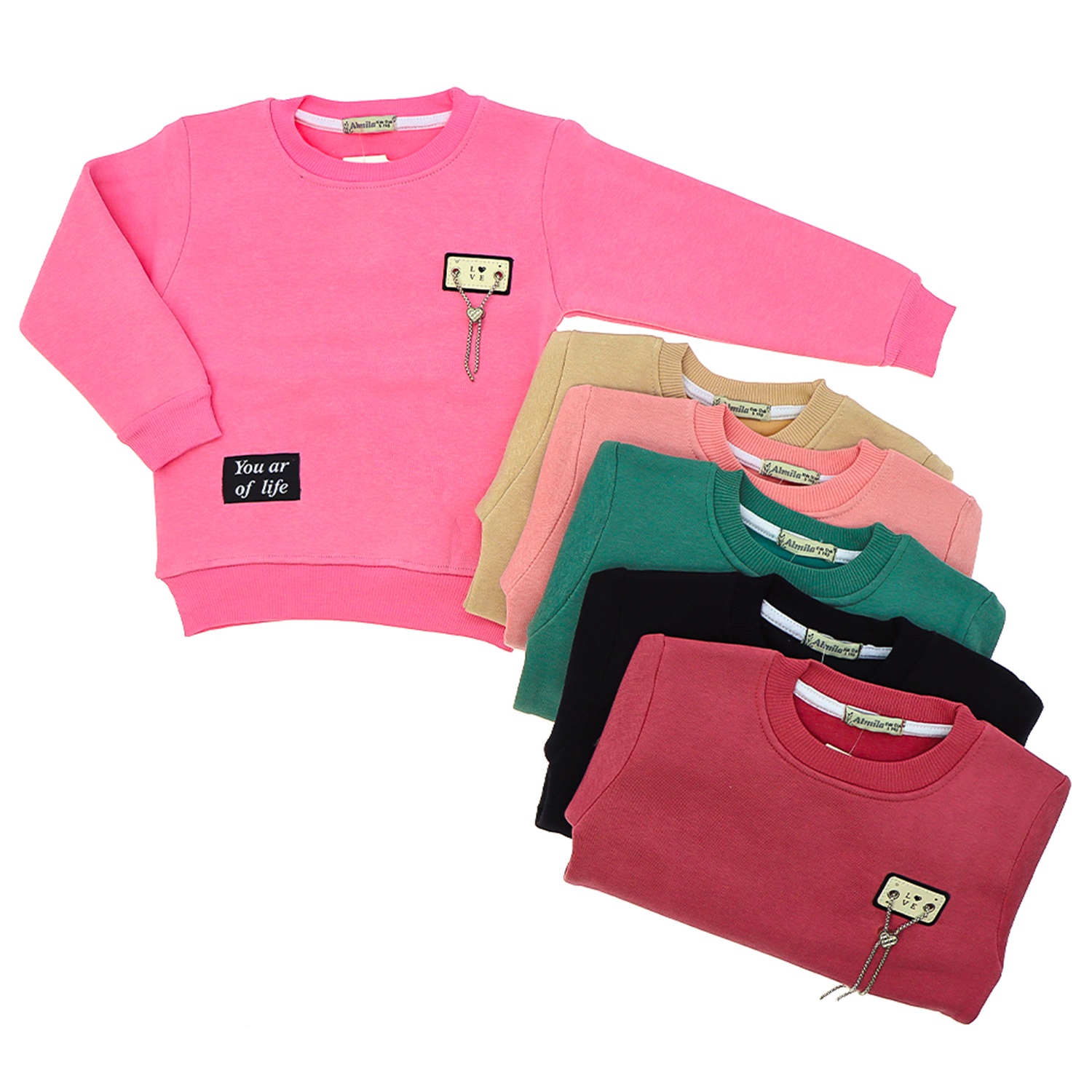Almila 1133 Kız Çocuk Armalı 3 İp Sıfır Yaka Sweat 9-12 Yaş