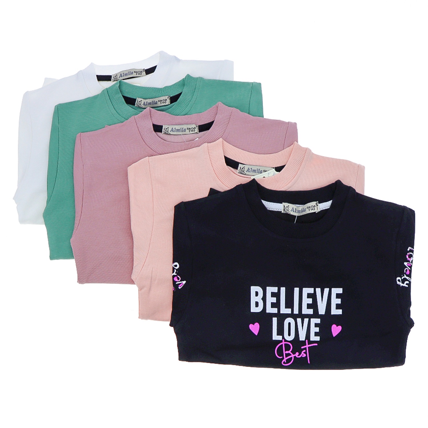 Almila 7029 Kız Çocuk 2 İp Belıeve Love Baskılı Sweat 5-8 Yaş