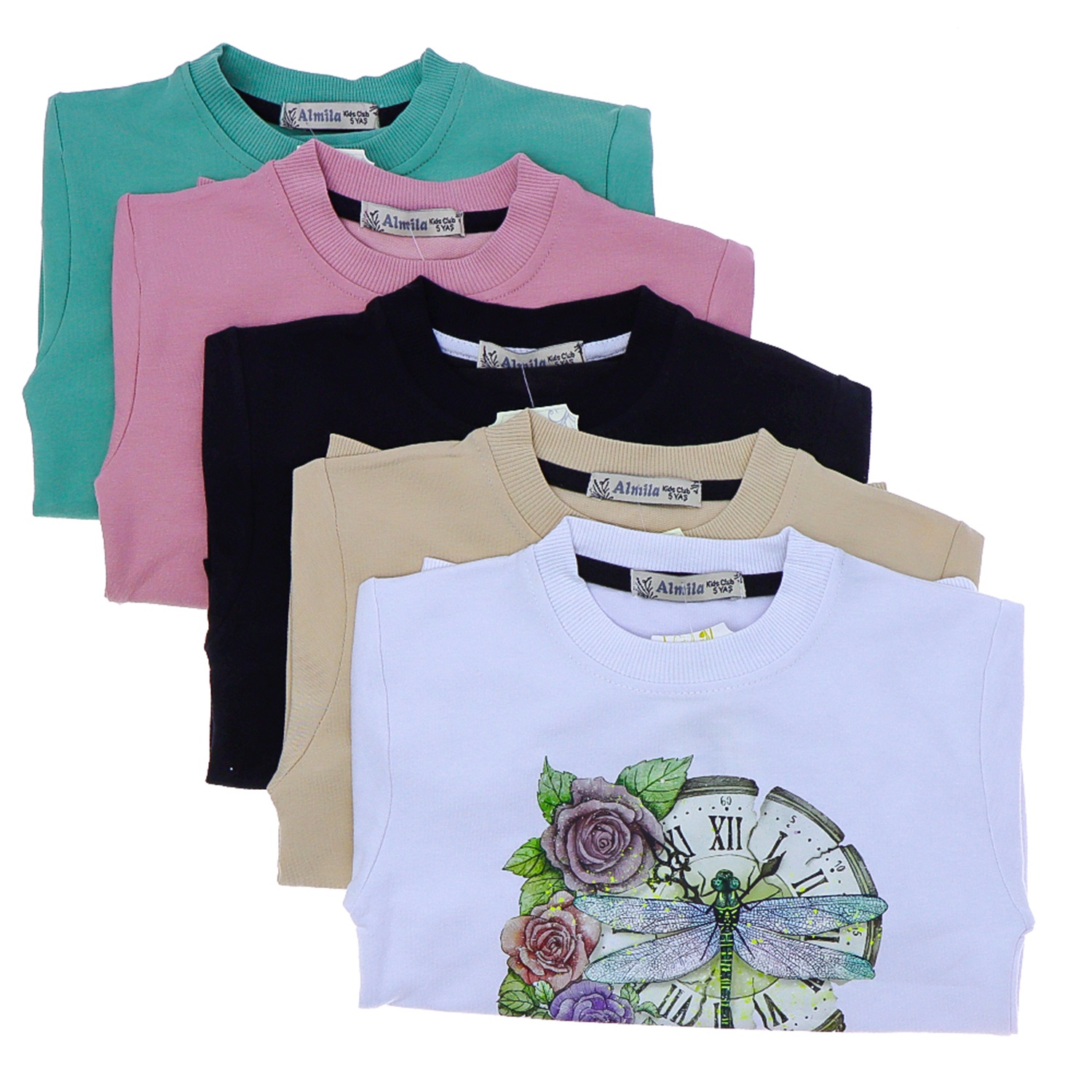 Almila 7029 Kız Çocuk 2 İp Saat Çiçek Baskılı Sweat 9-12 Yaş - Somon - 9-12 YAŞ