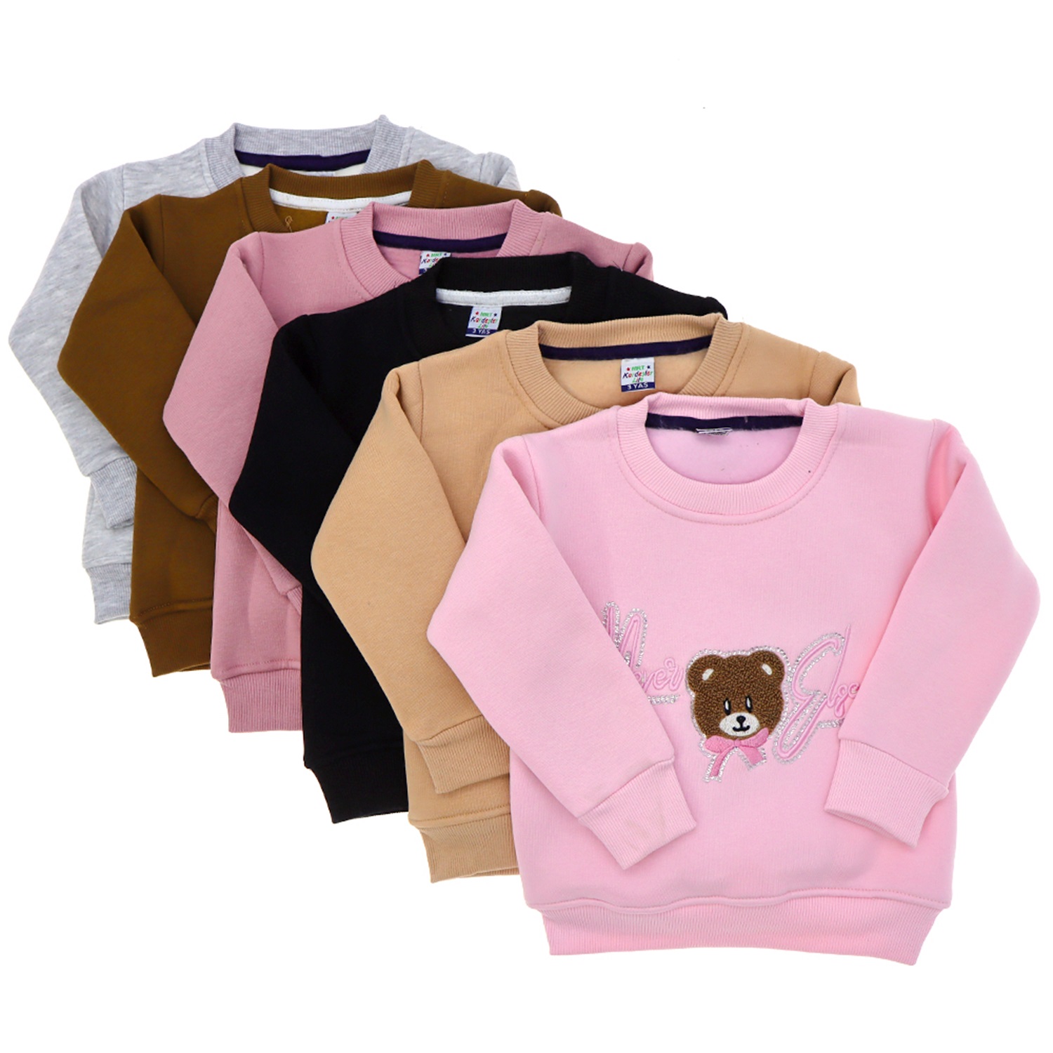 Kardeşler Kız Çocuk 3 İplik Süzine Sevimli Ayıcık Nakışlı Sweat 3-7 Yaş