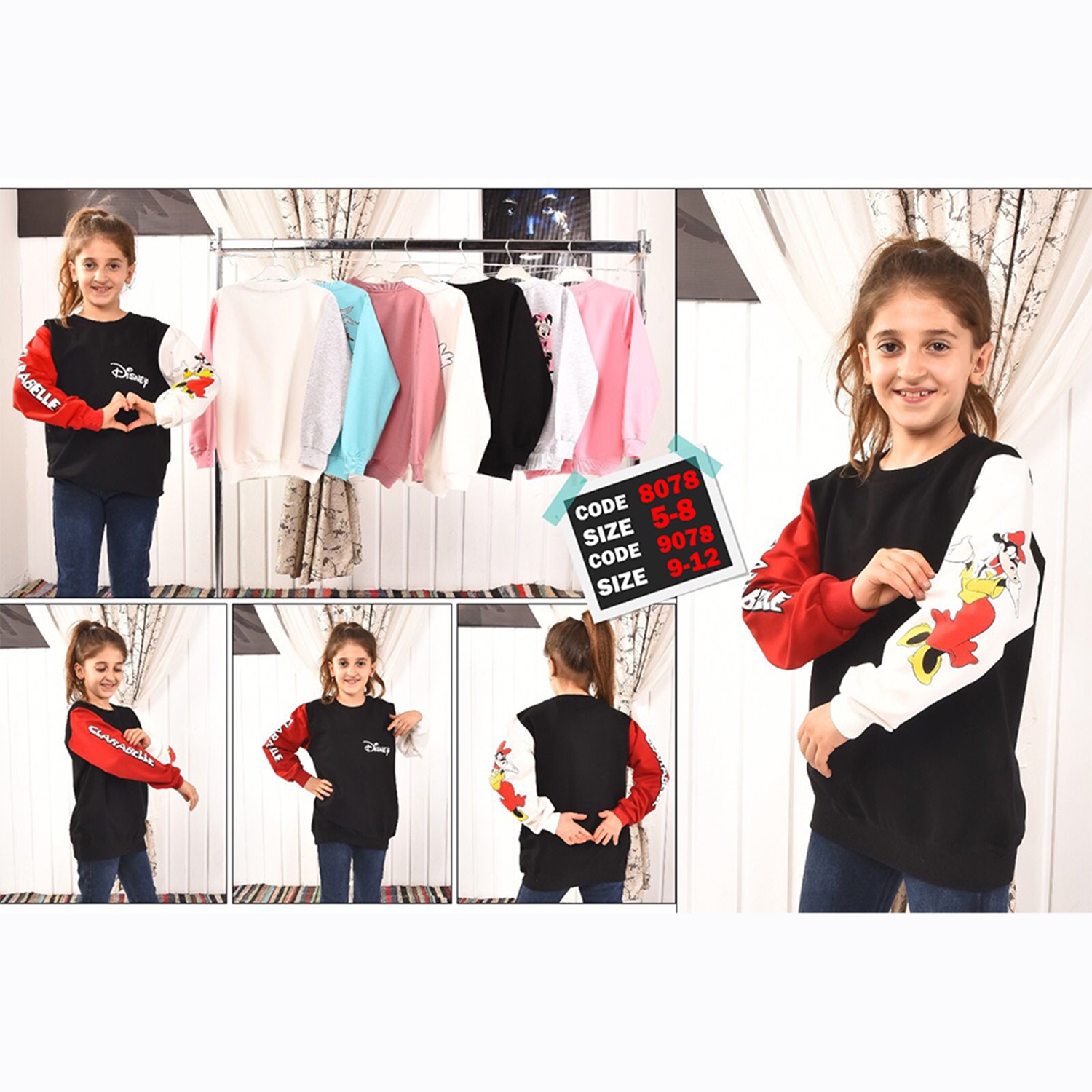 Zara 8078 Kız Çocuk Disney Baskılı Penye Simit Yaka Sweat 5-8 Yaş