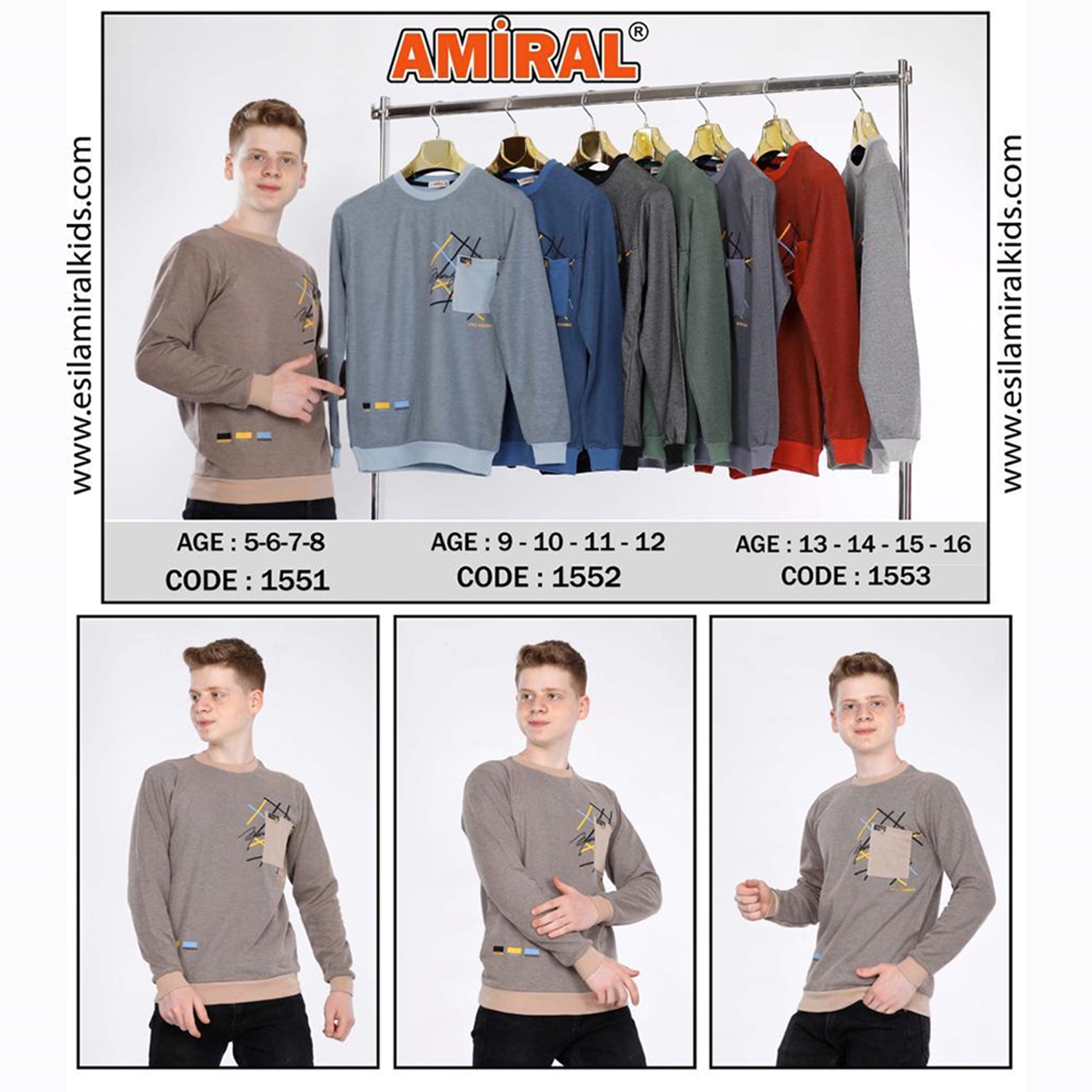 Amiral 1552 Erkek Çocuk Çelik Style Engraves Bas Sıfır Yaka Sweat 9-12 Yaş