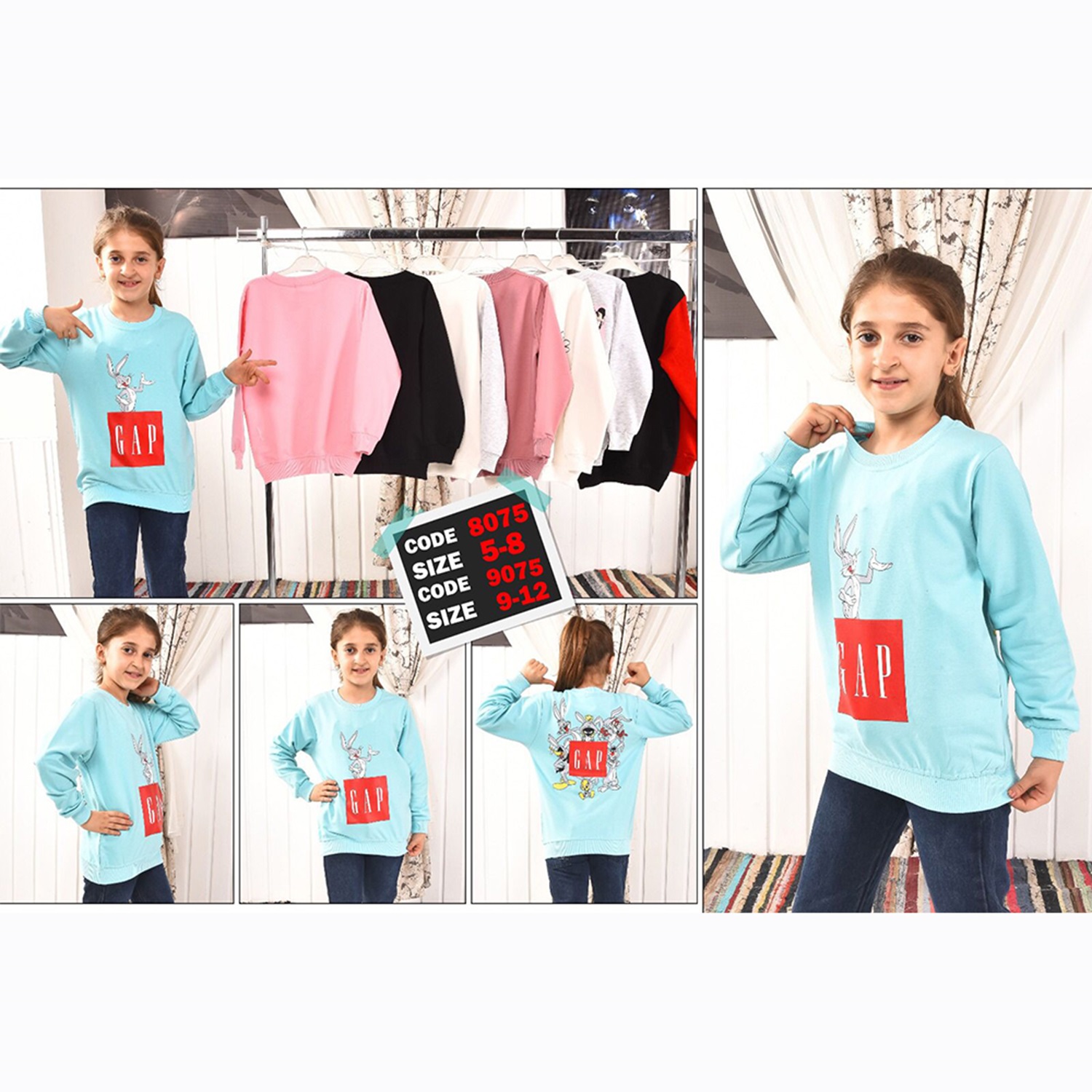 GAP 9075 Kız Çocuk Bunny Baskılı sıfır Yaka 2 İp Penye Sweat 9-12 Yaş