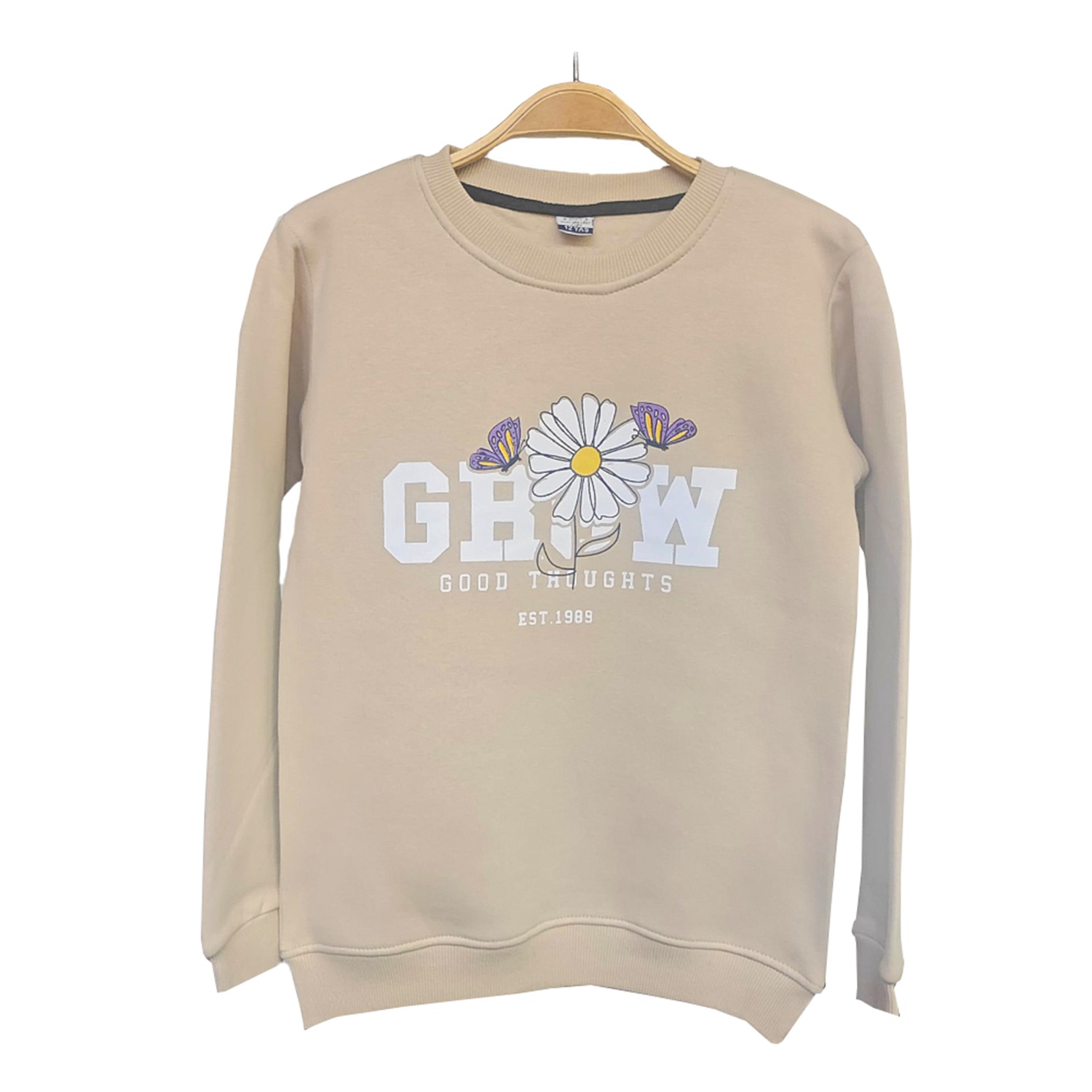 Kardeşler Lıfe Kız Çocuk 3 İp Kelebek Papatya Baskılı Sweat 9-12 Yaş