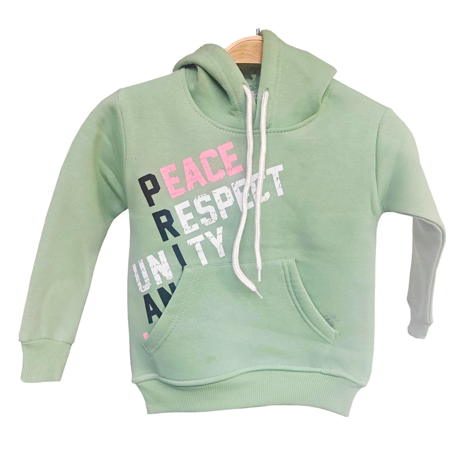 Kardeşler Lıfe Kız Çocuk 3 İplik Kapşonlu Peace Respect Baskılı Sweat 9-12 Yaş