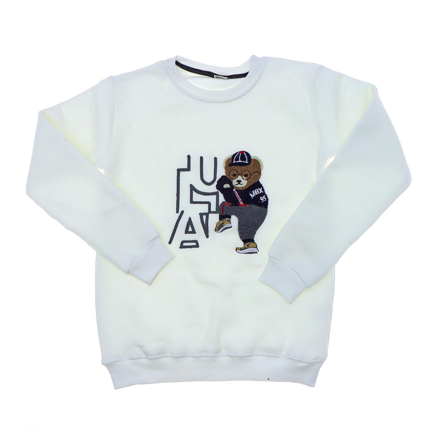 Mubix 3009 Erkek Çocuk 3 İp Şardonlu Süzine Sevimli Ayıcık Nakışlı Sıfır Yaka Sweat 13-16 Yaş