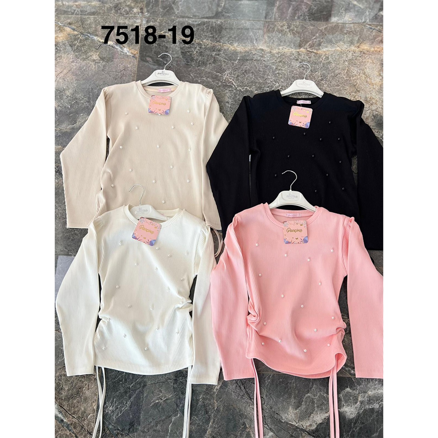 Pançiko 7518 Kız Çocuk Fitilli Yan Büzgülü İncili Sweat 5-8 Yaş