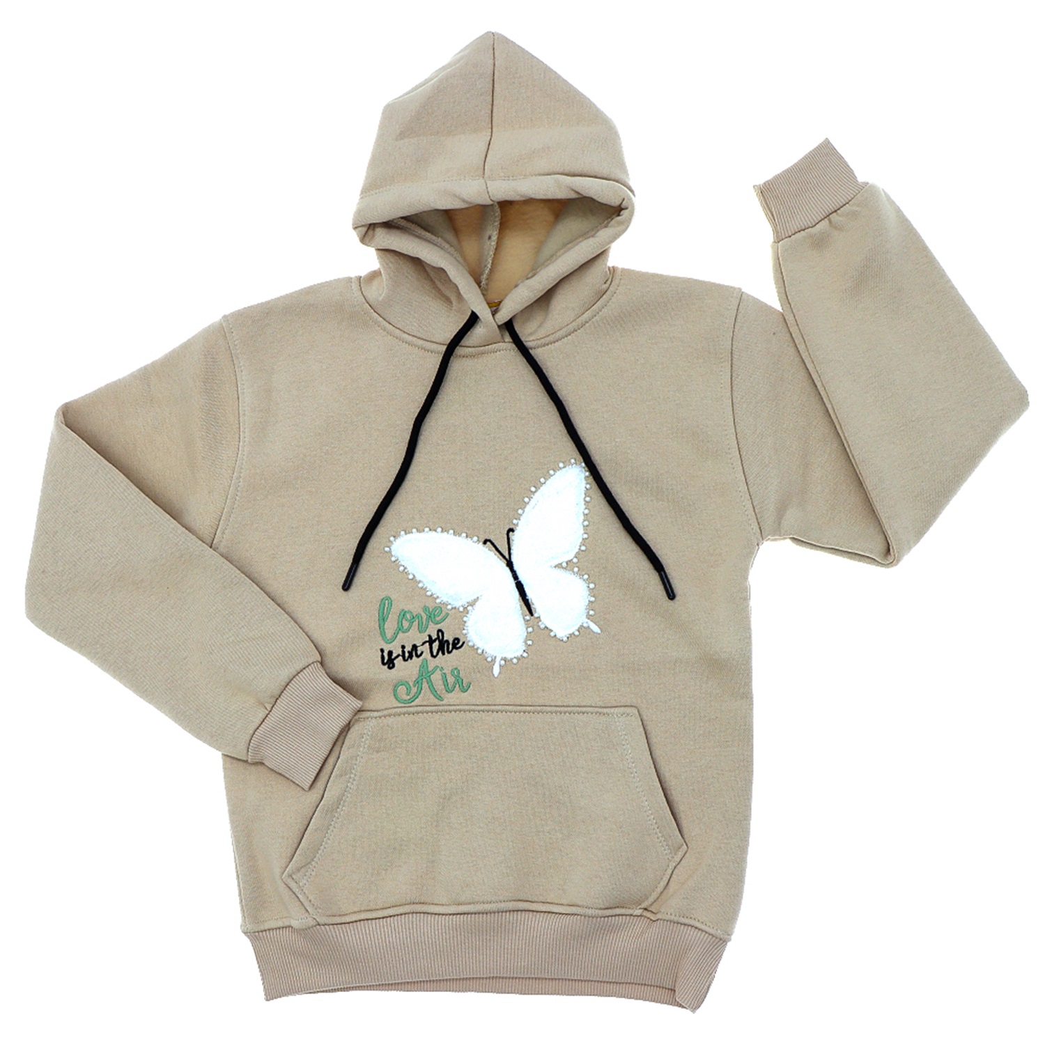 Papatyam Kids 11916 Kız Çocuk 3 İp Kelebek Peluş Boncuklu Nakışlı Kapşonlu Sweat 13-16 Yaş