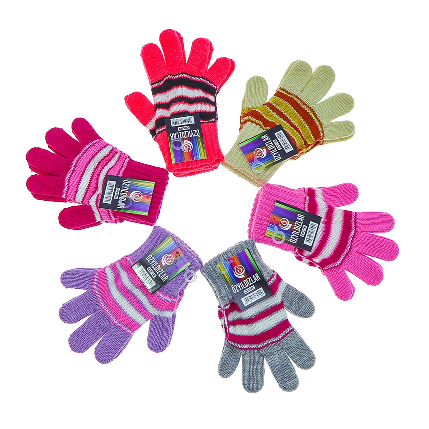 Özyıldızlar Kız Çocuk Çizgili Triko Çocuk Eldiven 5-8 Yaş (12 Li)