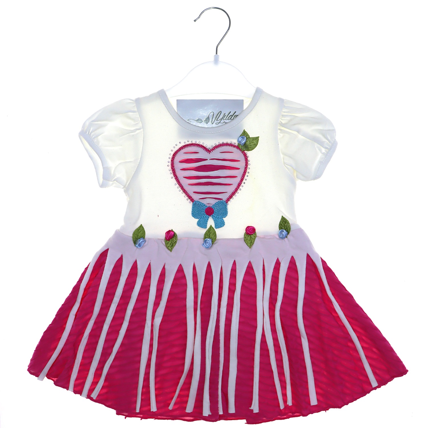843 Kız Çocuk Kalp Kesmeli Penye Elbise 1-3 Yaş