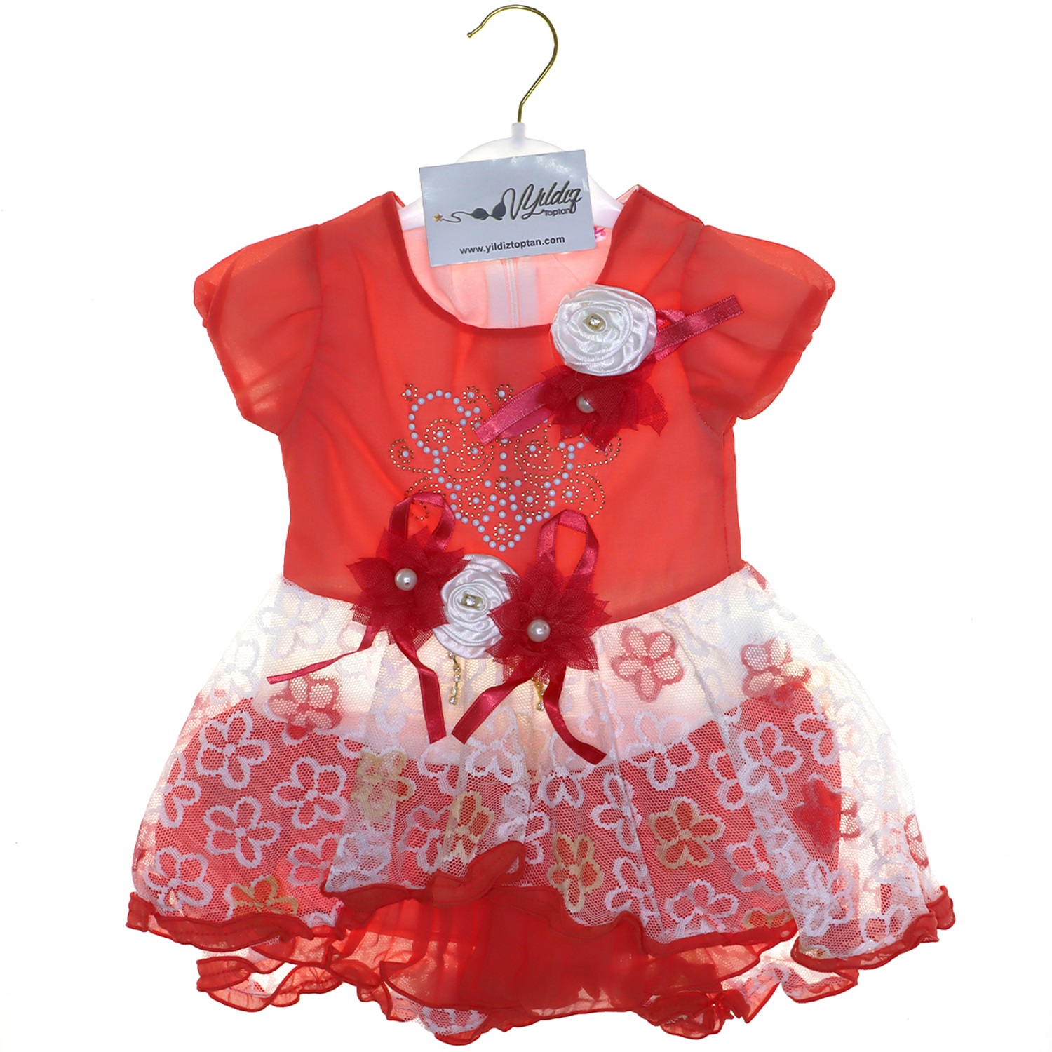 852 Kız Çocuk Etek Ucu Fırfırlı Taşlı Elbise 1-3 Yaş