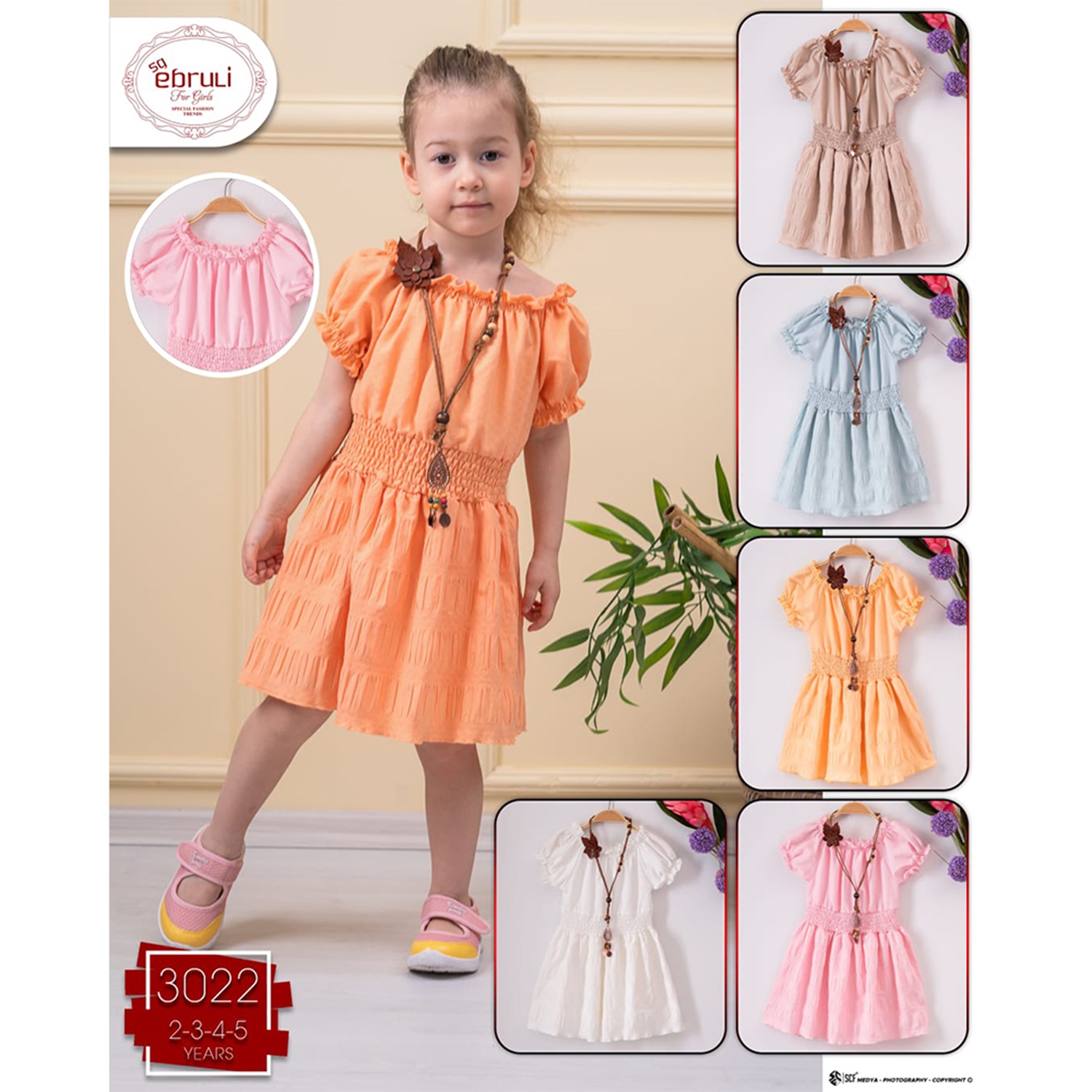 Ebruli 3022 Kız Çoçuk Beli Lastikli Fırfırlı Elbise 2-3-4-5 Yaş