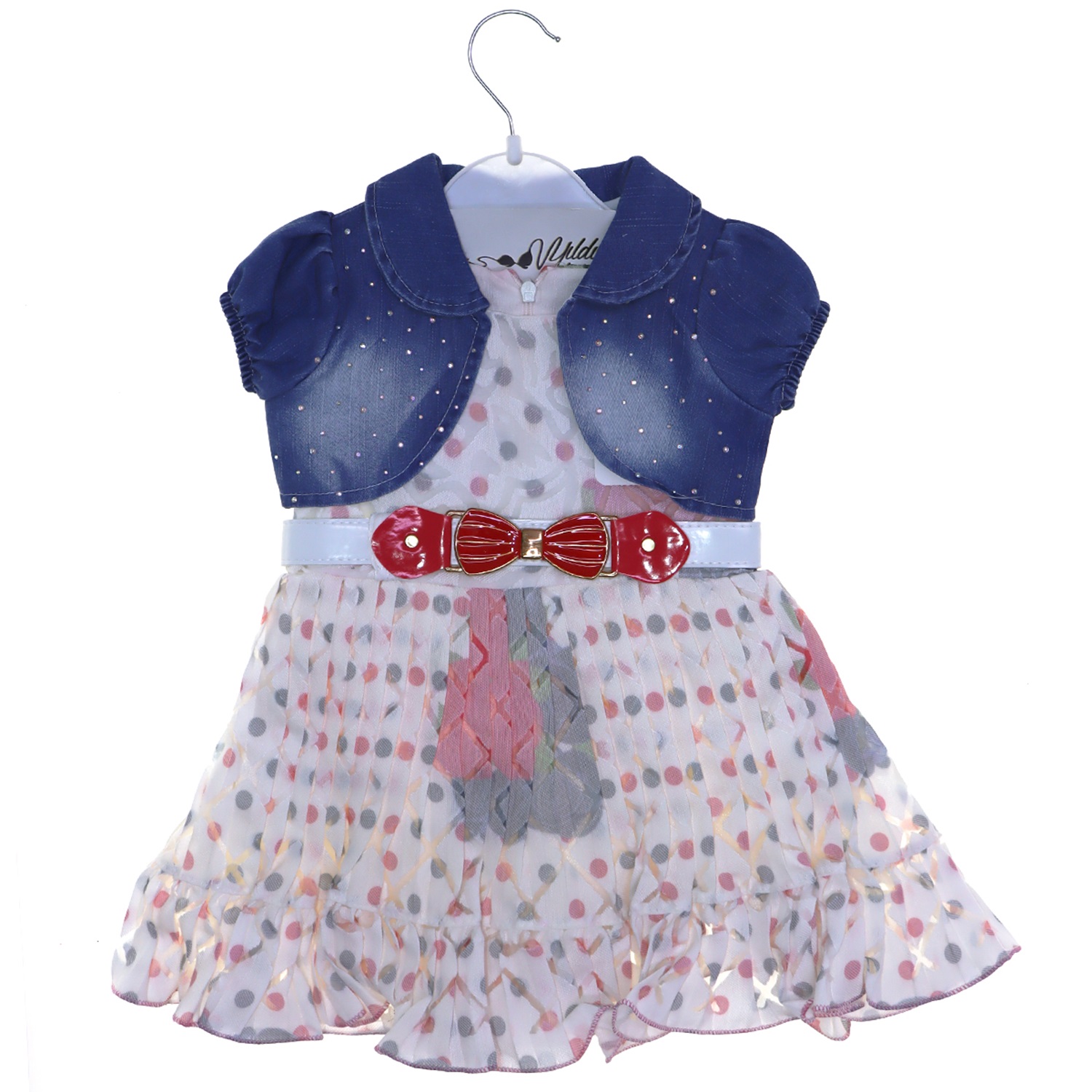 Kız Çocuk Eteği Pileli Puanlı Kot Bolerolu Elbise 1-3 Yaş