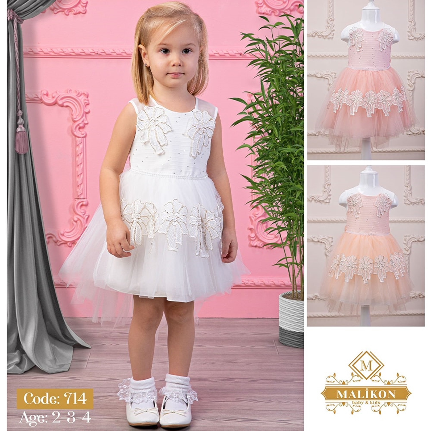 Mali 714 Kız Çocuk Fiyonklu Elbise 2-3-4 Yaş
