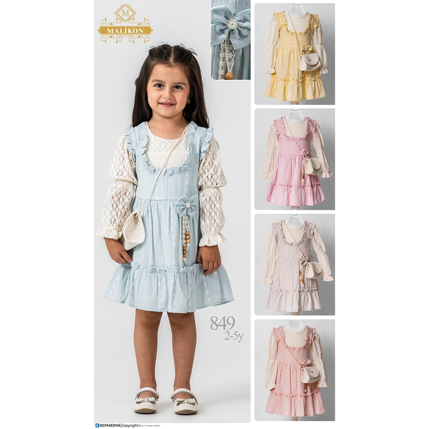 Mali-Kon 849 Kız Çocuk Müslum Çizgili Çantalı Elbise 2-5 Yaş
