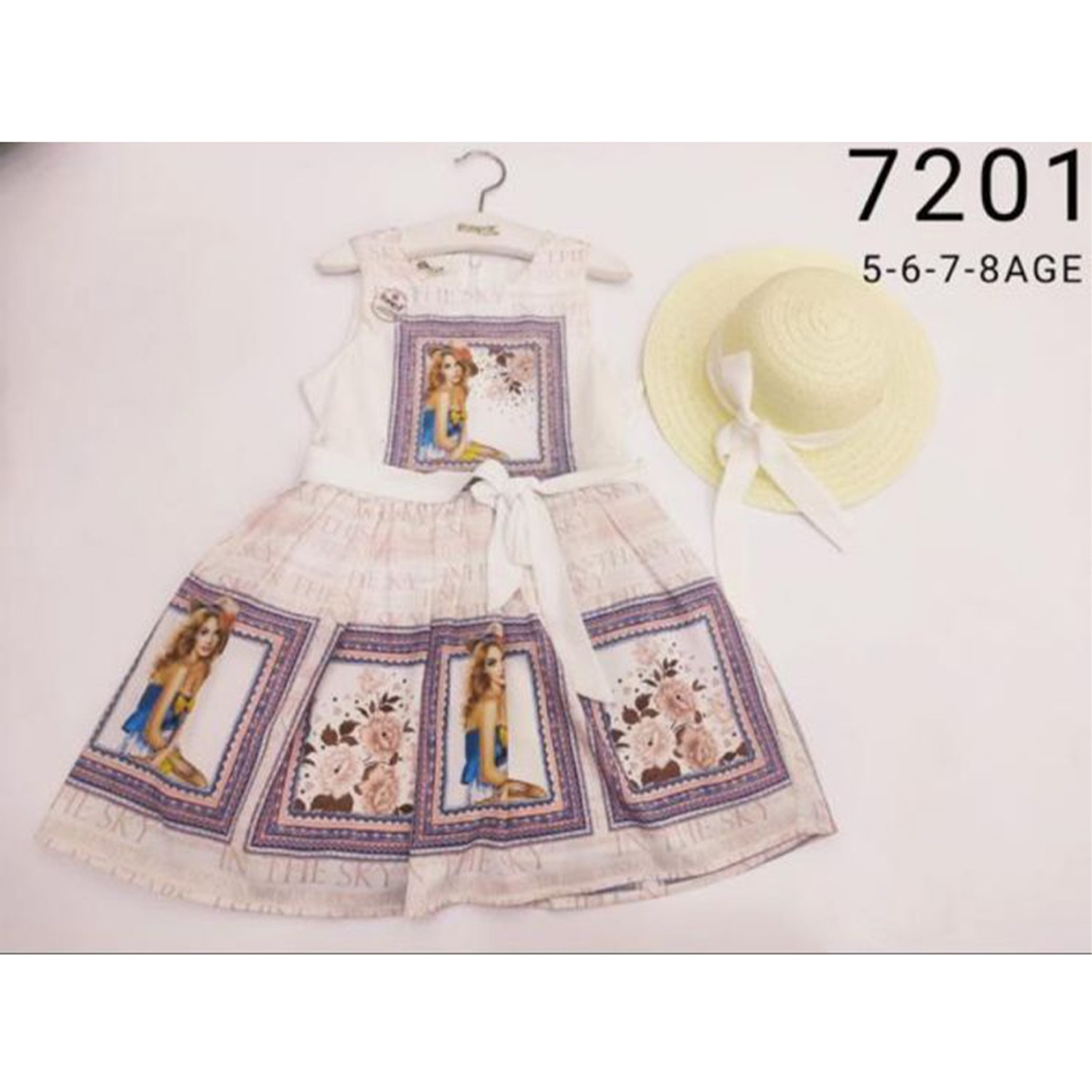 Pampal 7201 Kız Çocuk Baskılı Taşlı Şapkalı Elbise 5-8 Yaş
