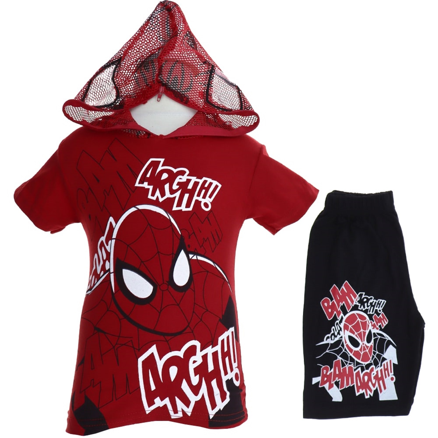 İbocan 3455 Erkek Çocuk Kapşonlu Blam Arghh! Baskılı Tişört Şort Takım 3-6 Yaş