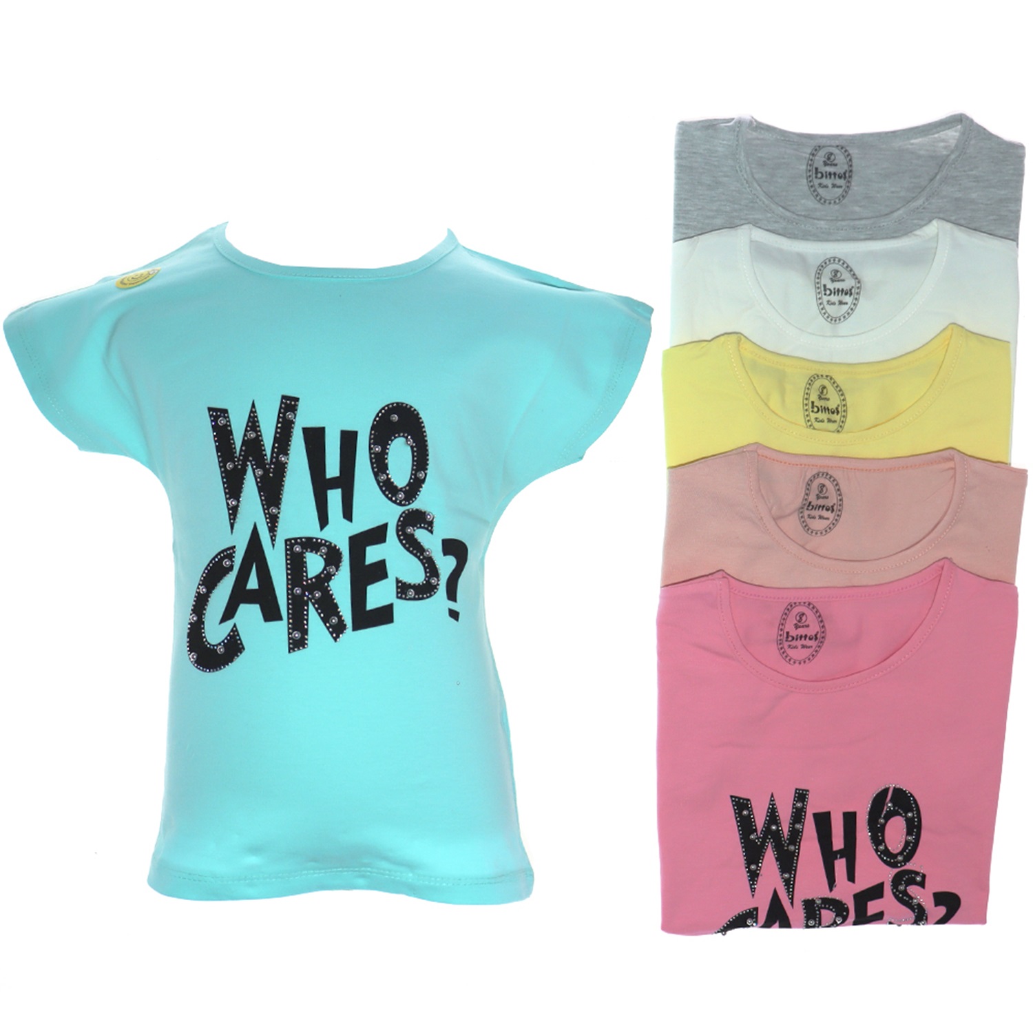 Bittoş 0166 Kız Çocuk Who Cares Baskılı Taş Ve İncili Penye Tişört 5-8 Yaş