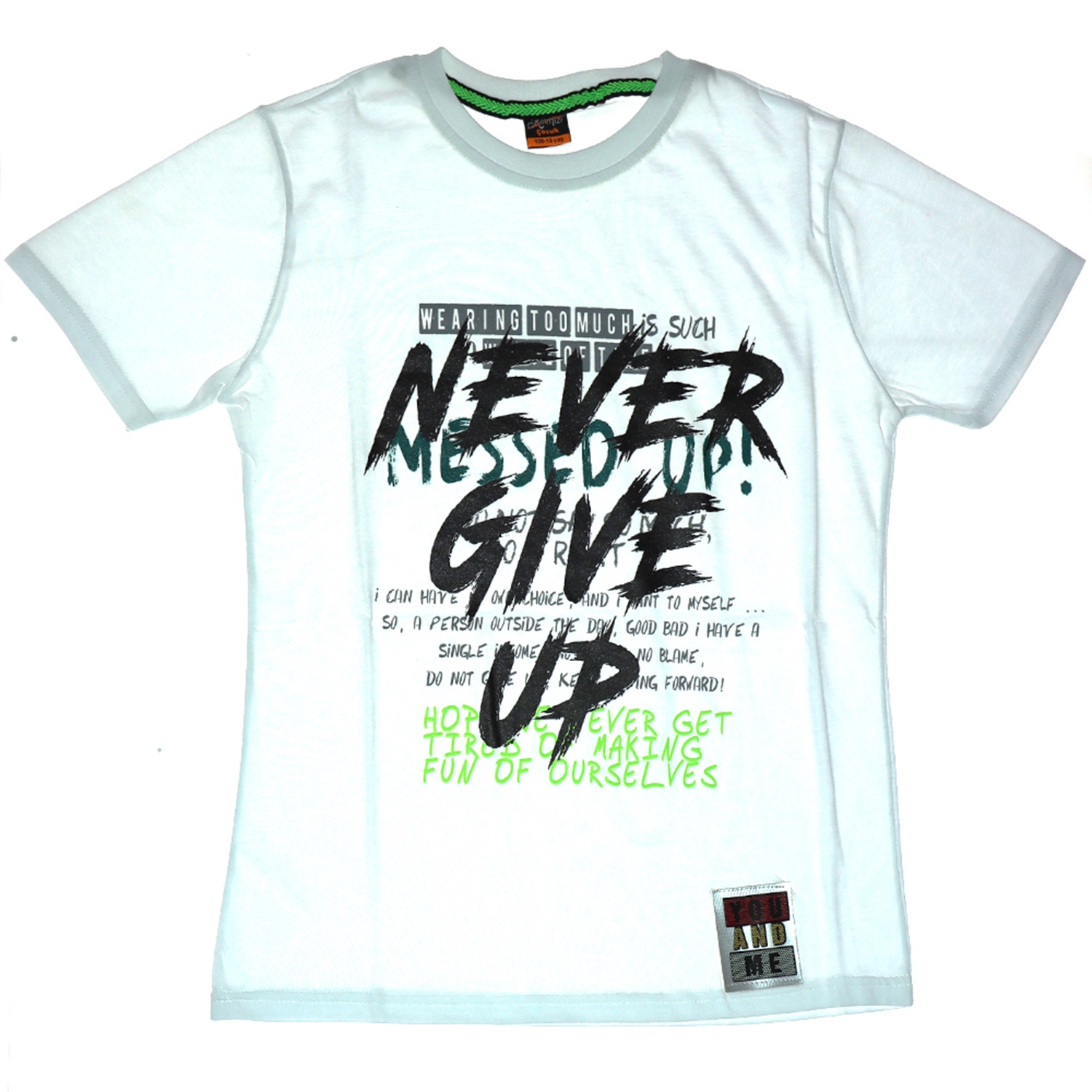 Kırmızı 5017 Erkek Çocuk Never Gıve Baskılı Tişört 13-16 Yaş