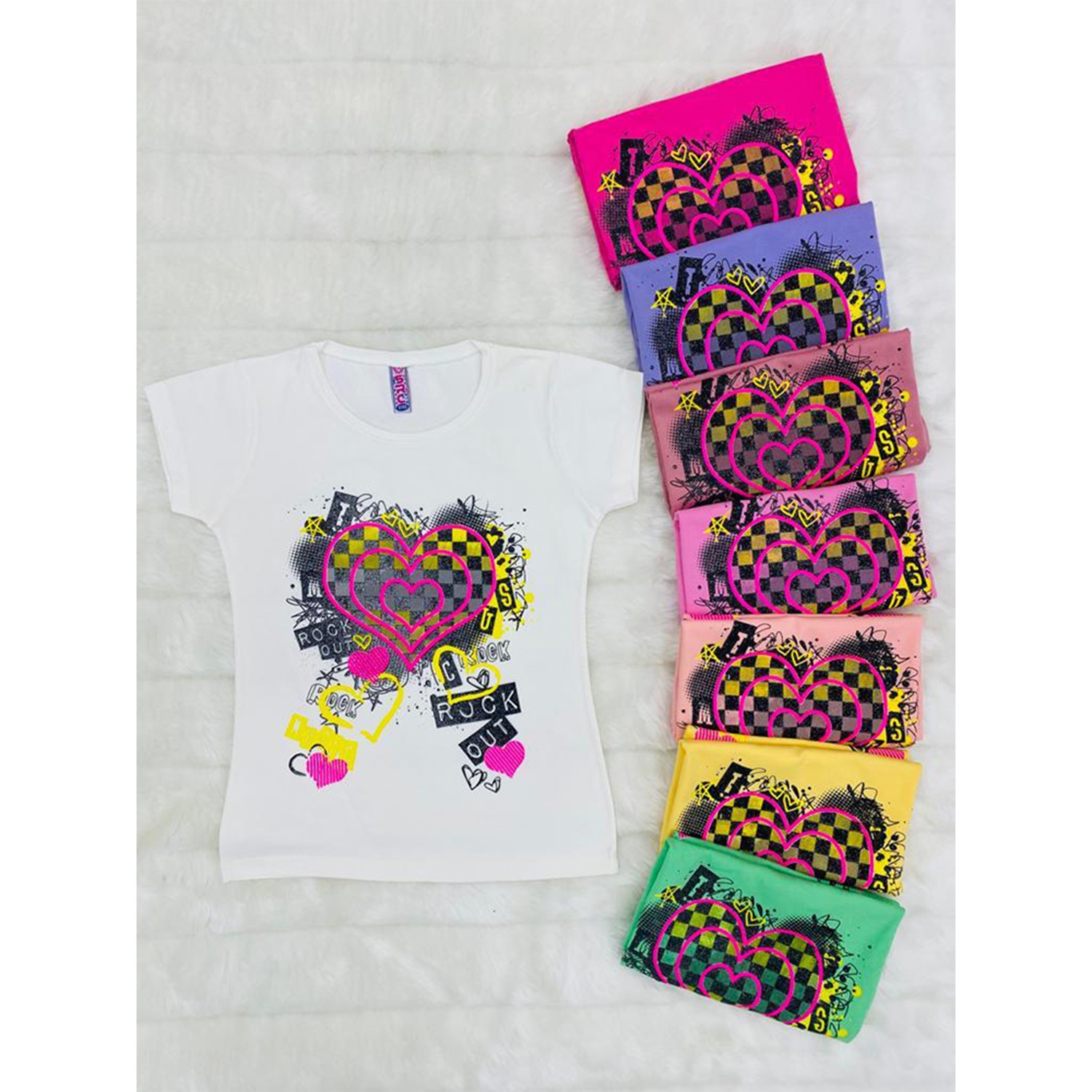 Src 926 Kız Çocuk Rock Out Baskılı Sıfır Yaka Tişört 3-7 Yaş