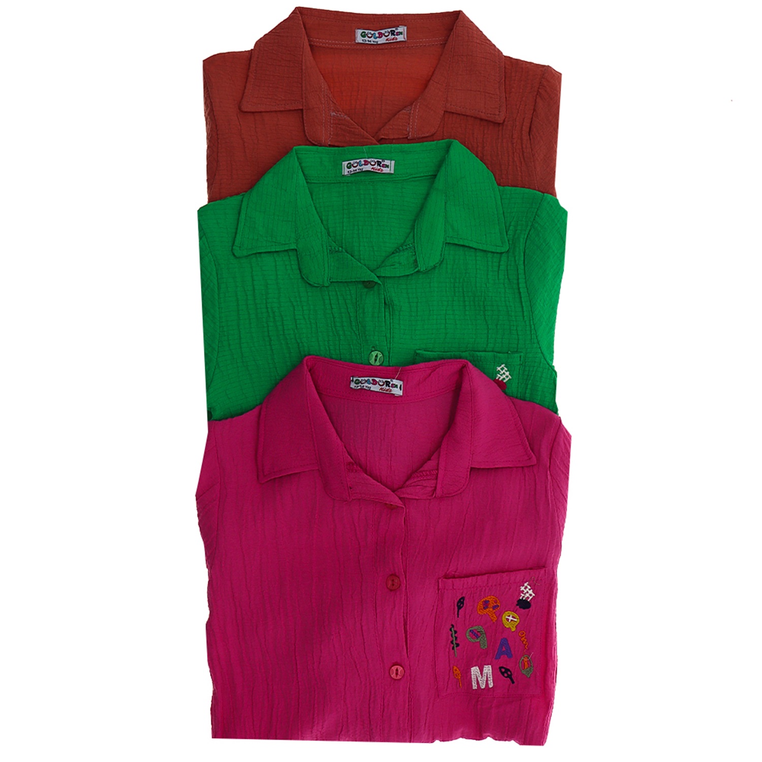Güldür 9095 Kız Çocuk Cep Nakışlı Gömlek 13-16 Yaş
