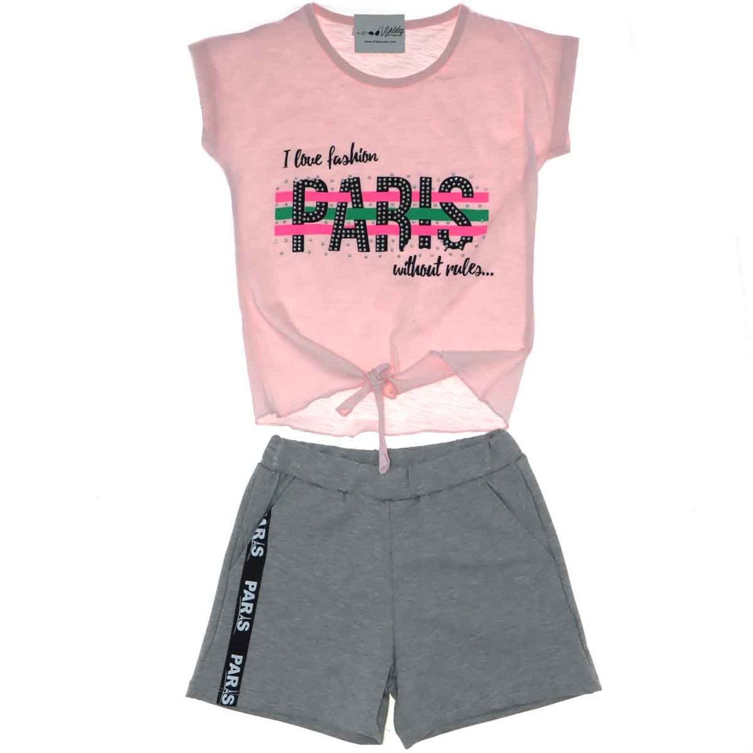2531 Paris Taşlı Şortlu Penye Kız Çocuk Takım 3-6 Yaş