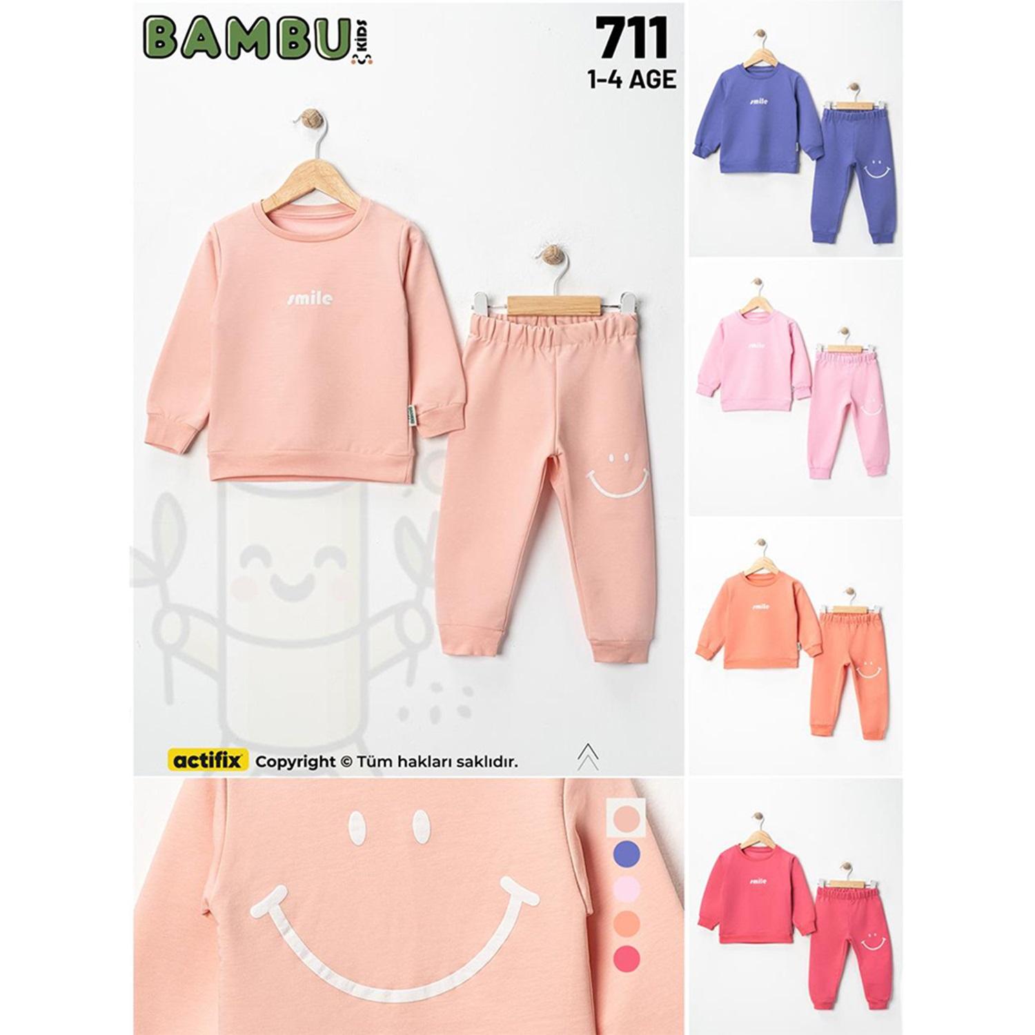 Bambu Kids 711 Kız Çocuk 2 İplik Smile Baskılı Sıfır Yaka Takım 1-4 Yaş