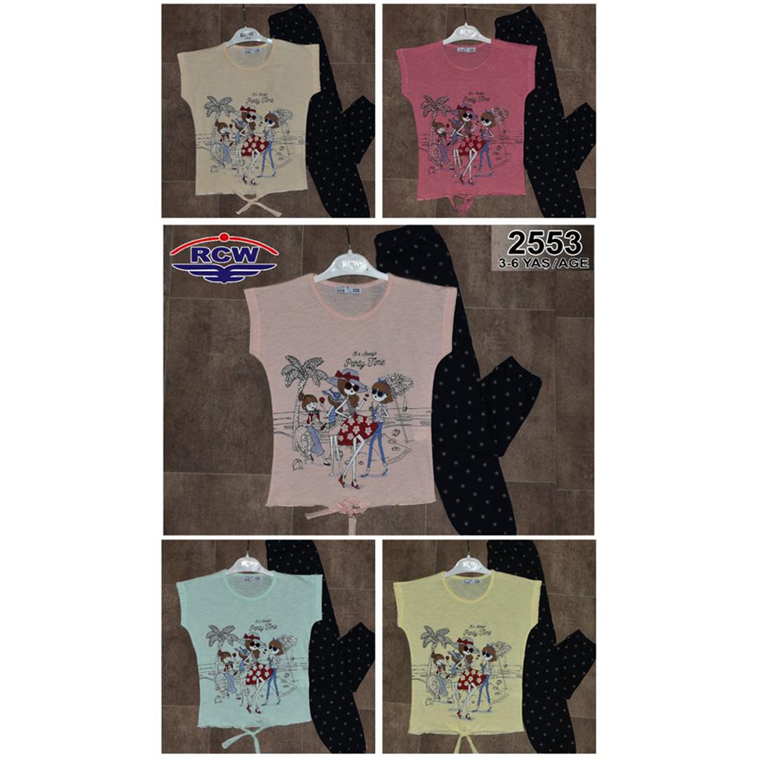 RCW Boy 2553 Kız Çocuk Penye Party Time Bas.Taşlı Şalvarlı Takım 3-6 Yaş
