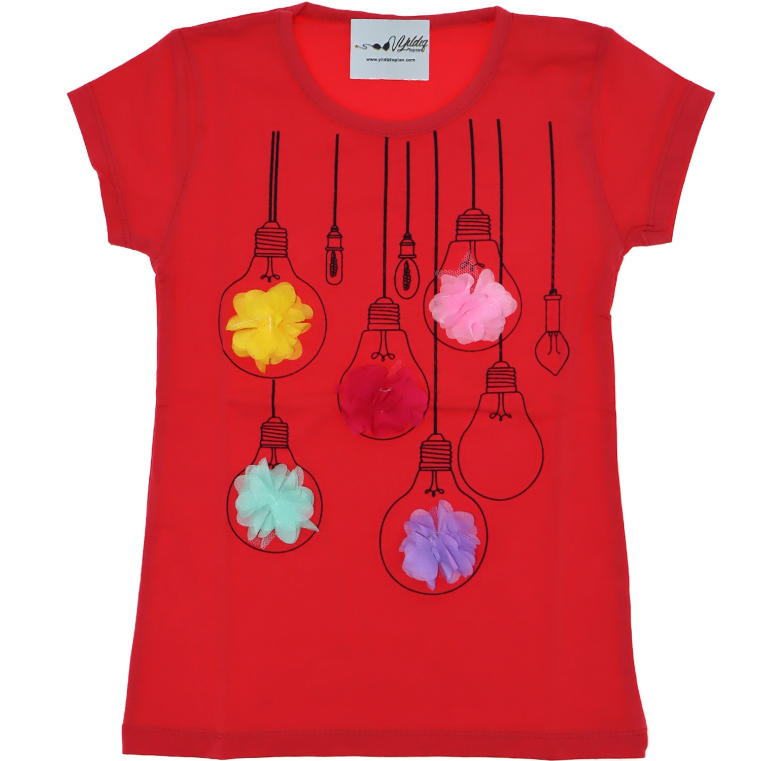 3182 Ampullu Baskılı Kız Penye Tişört Tshirt 9-12 Yaş