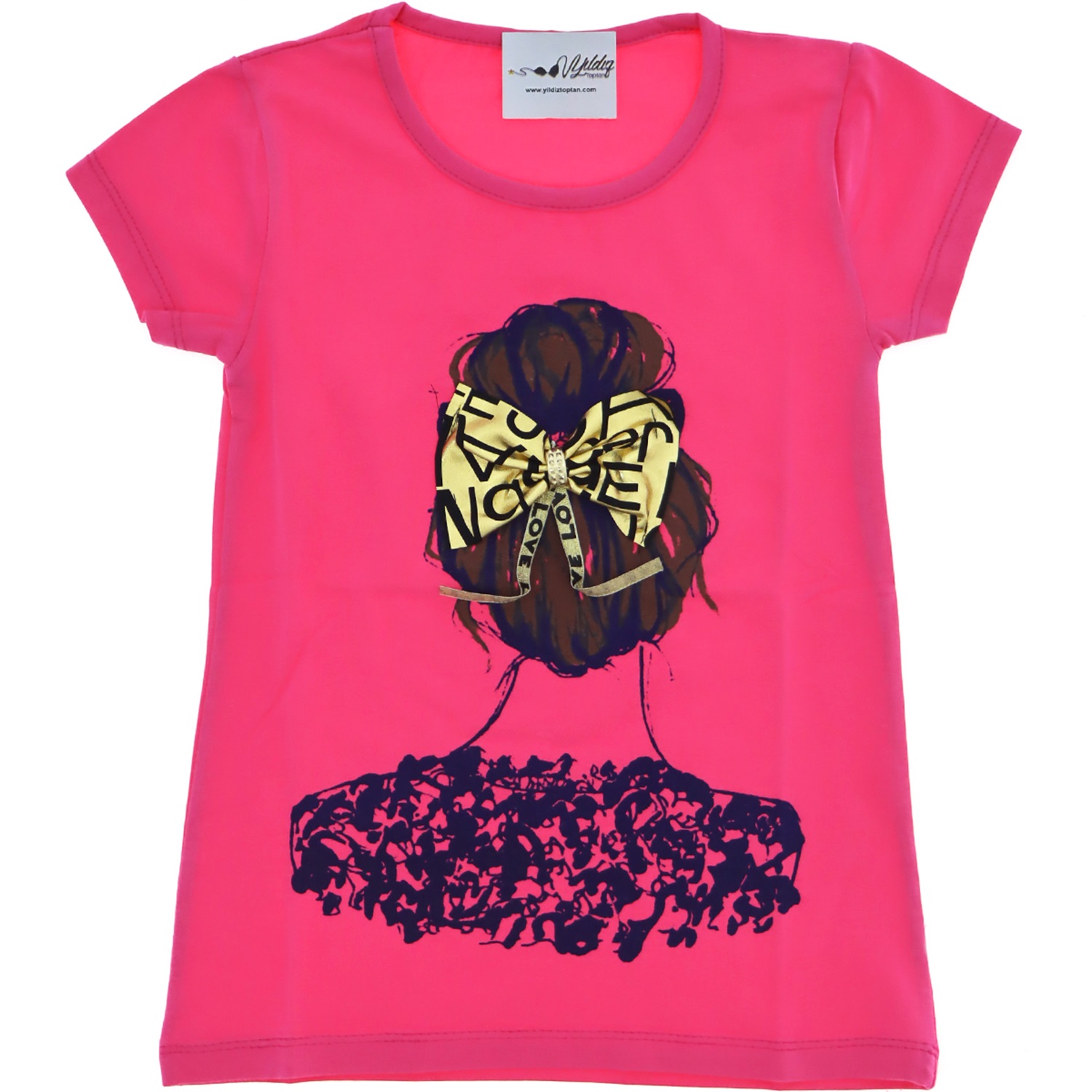 4165 Fiyonklu Saç Baskı Kız Penye Tişört Tshirt 5-8 Yaş
