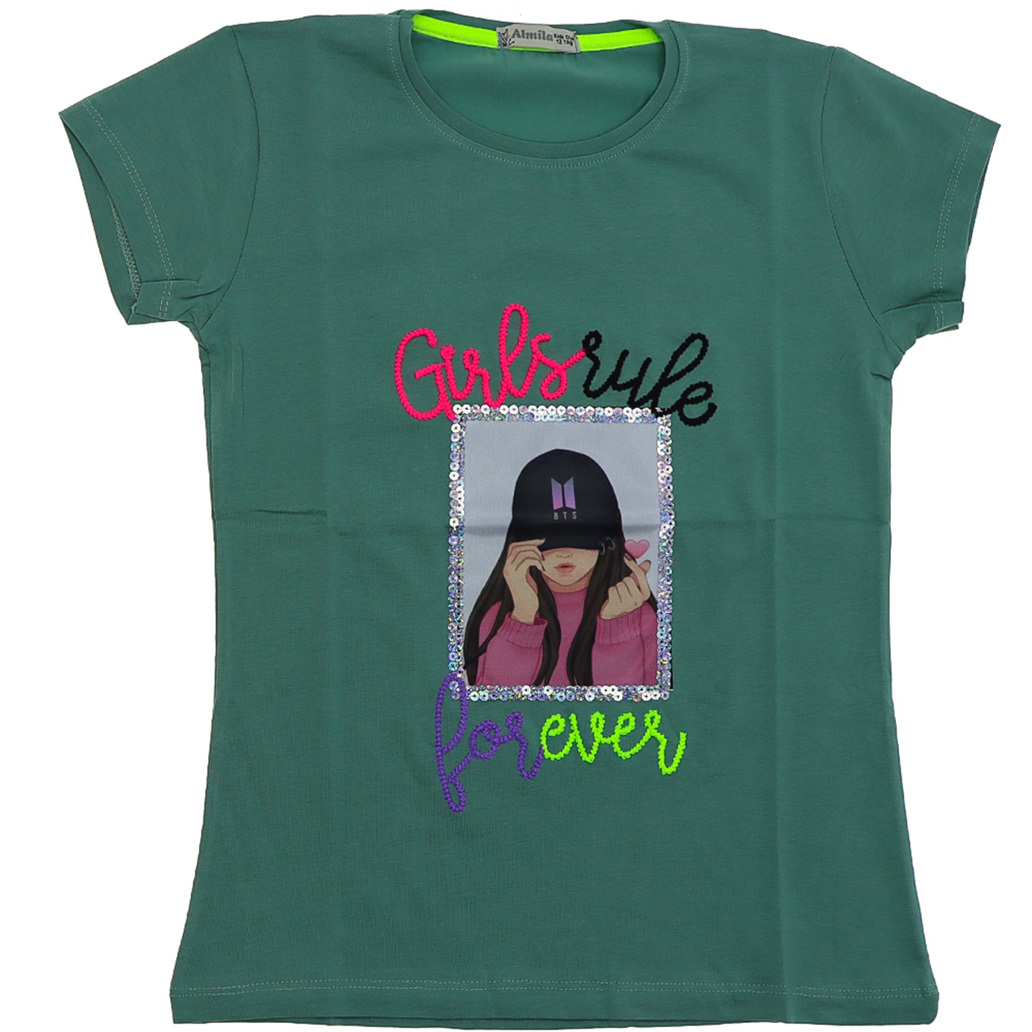 Almila 0006 Kız Çocuk Penye Dijital Nakışlı Tişört 9-12 Yaş