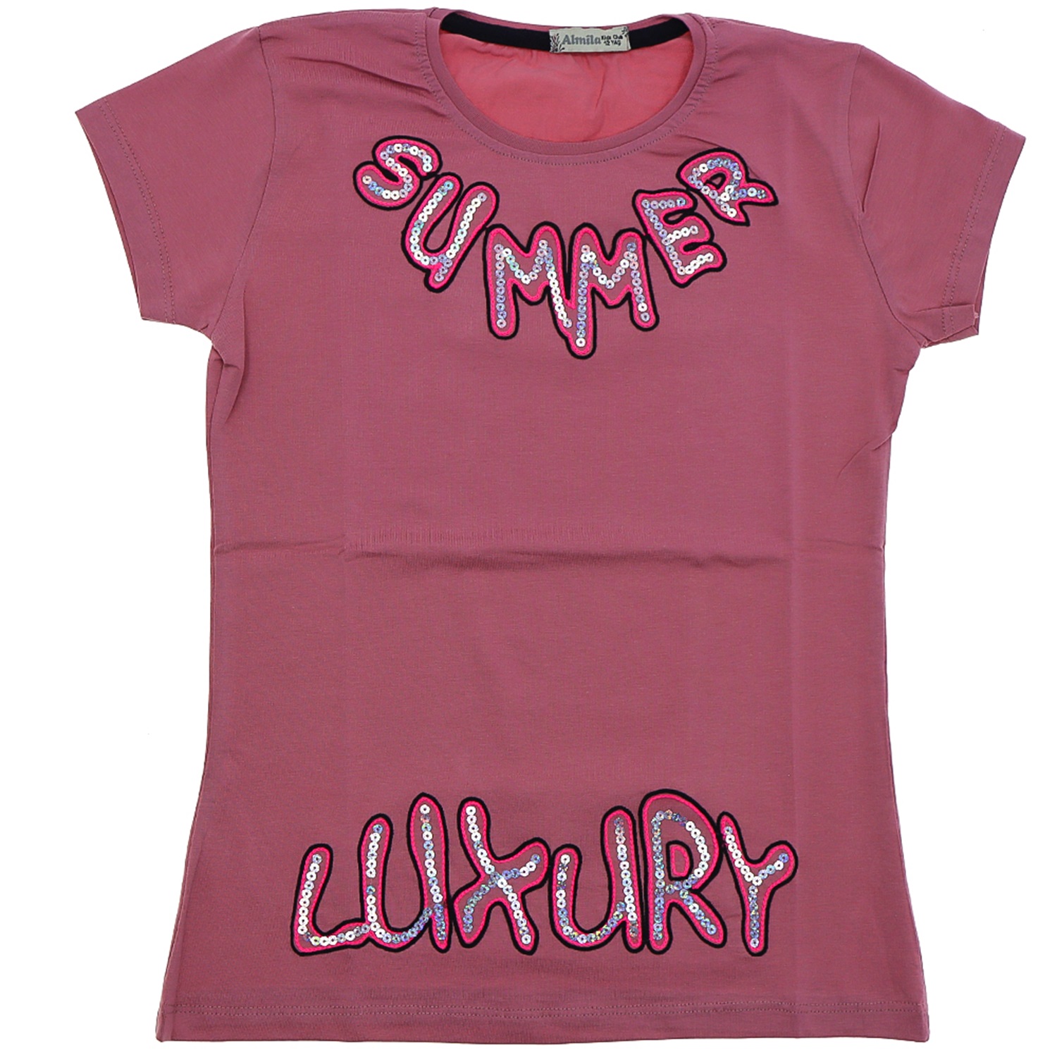 Almila 0105 Kız Çocuk Penye Summer Nakışlı Tişört 5-8 Yaş