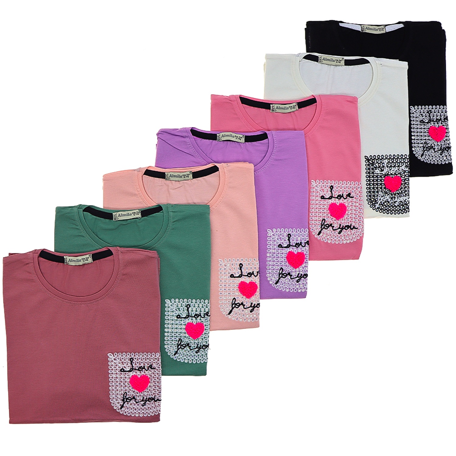 Almila 1232 Kız Çocuk Penye Cep Nakışlı Tişört 5-8 Yaş