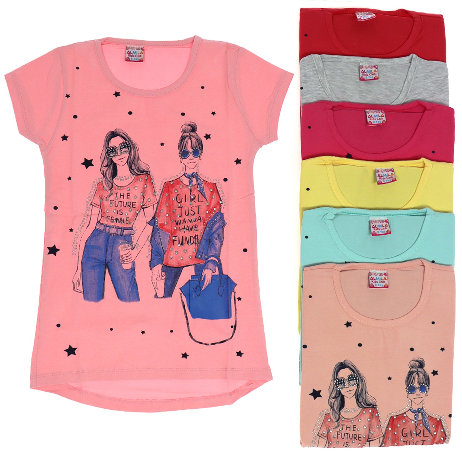 Almila Gözlüklü Kız Baskılı Kız Çocuk Tişört 5-8 Yaş