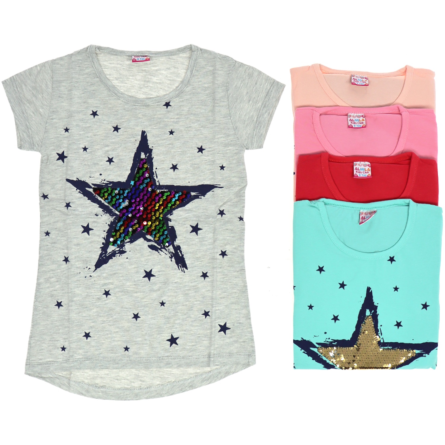 Almila Pullu Yıldız Baskılı Kız Çocuk Tişört 5-8 Yaş