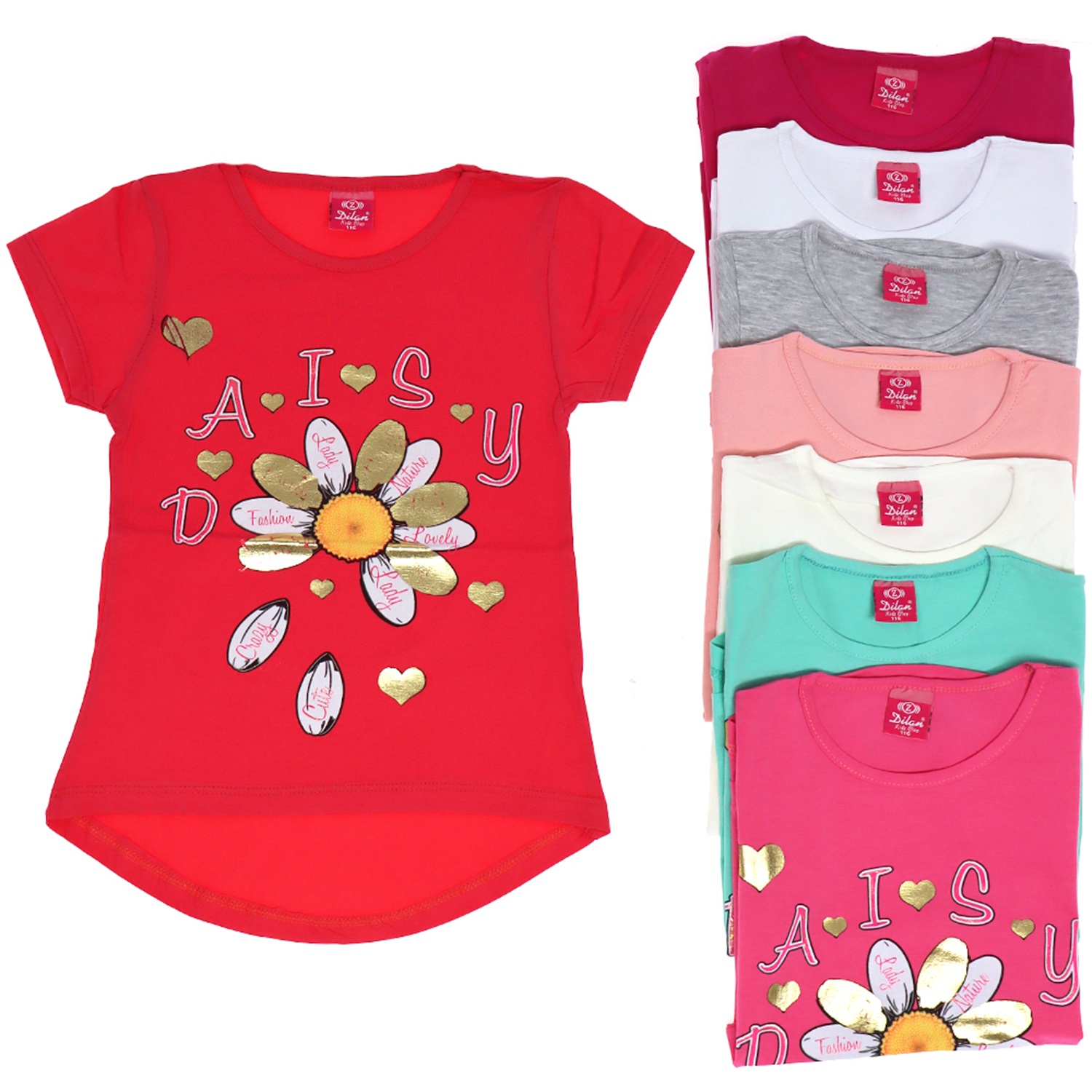 Dilan 353 Papatya Baskılı Kız Çocuk Tişört 1-4 Yaş