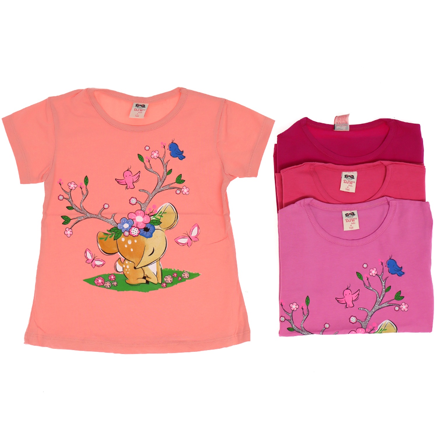 Djw Geyik Baskılı Likralı Kız Çocuk Tişört 1-4 Yaş