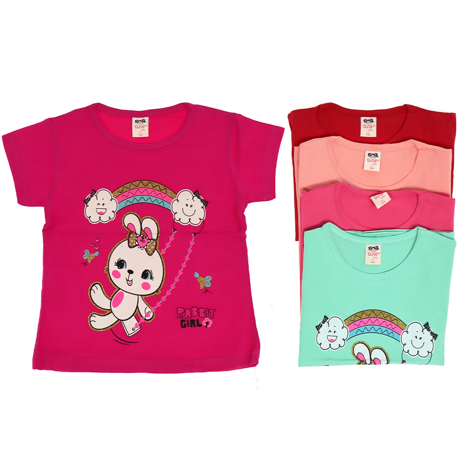 Djw Tavşan Baskılı Likralı Kız Çocuk Tişört 1-4 Yaş