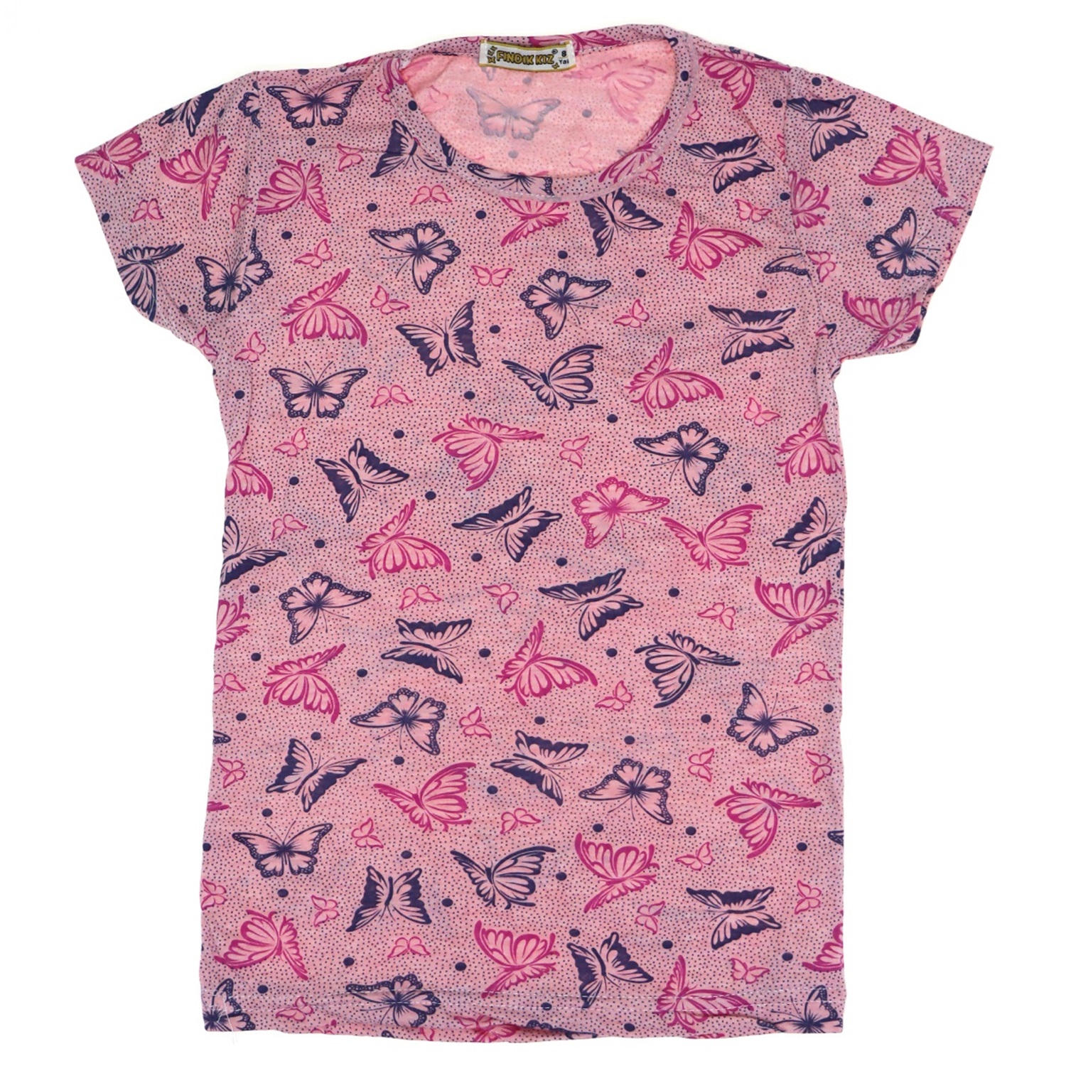 Kız Kelebek Baskılı Likralı Süprem Penye Tişört 3-6 Yaş - Pembe
