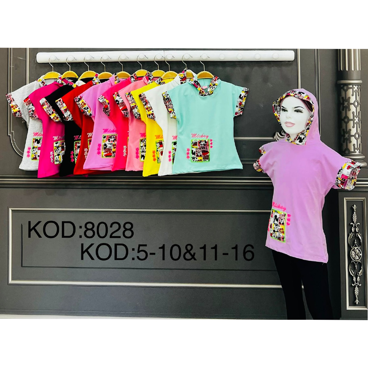 Özmiraç 8028 Kız Çocuk Kapşonlu Mickey Baskılı Tişört 5-10 Yaş