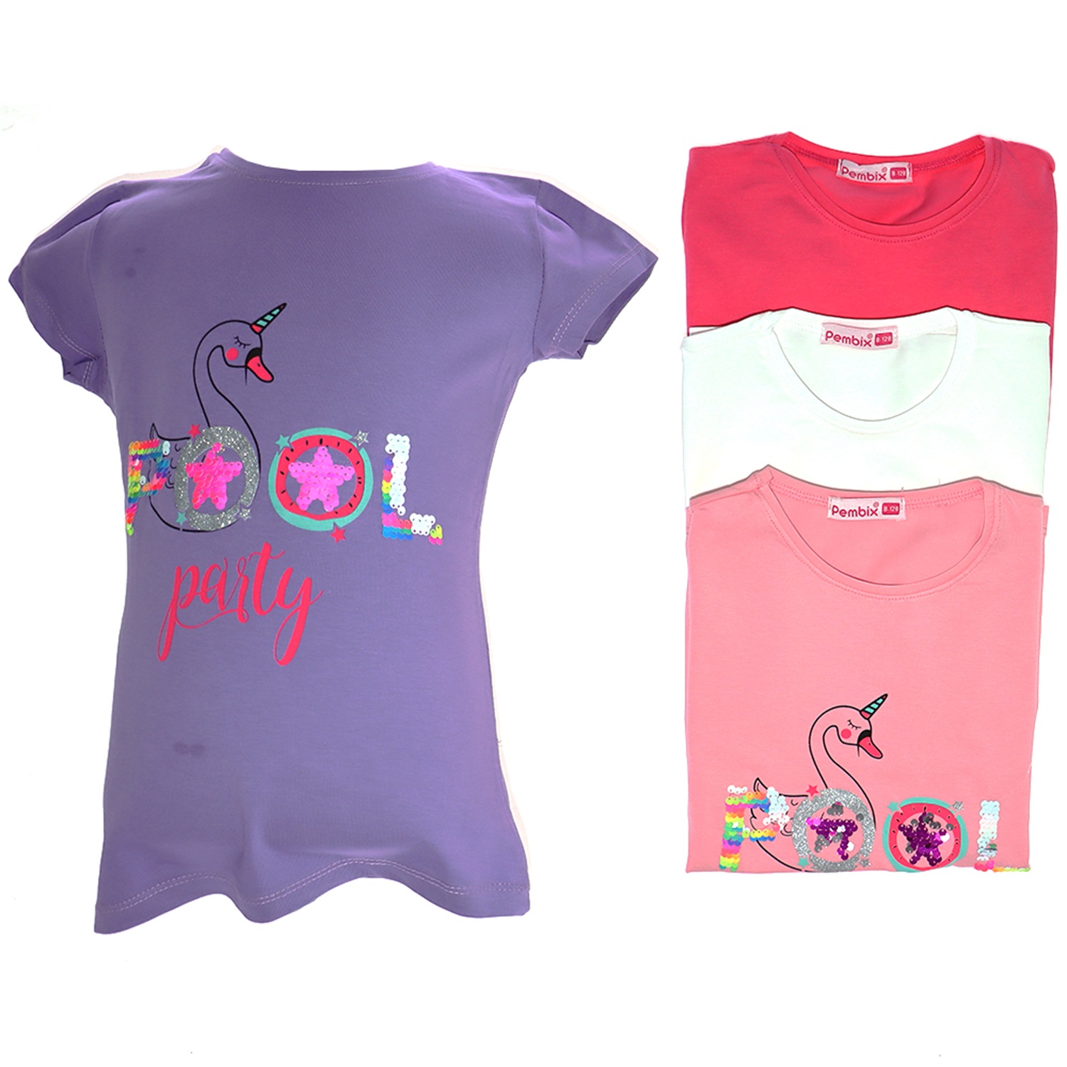Pembix 289 Kız Çocuk Penye Kuğulu Pullu Tişört 1-8 Yaş