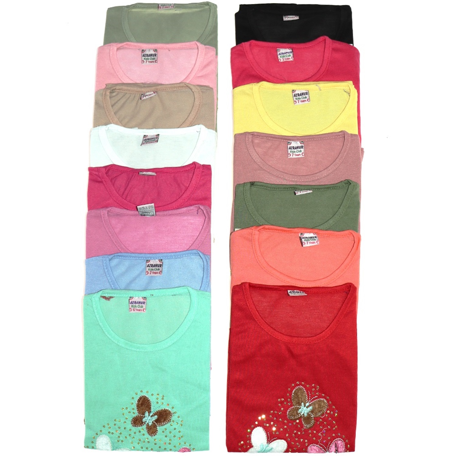 Azranur 10018 Kız Çocuk Kelebek Nakışlı Tişört 8-12 yaş