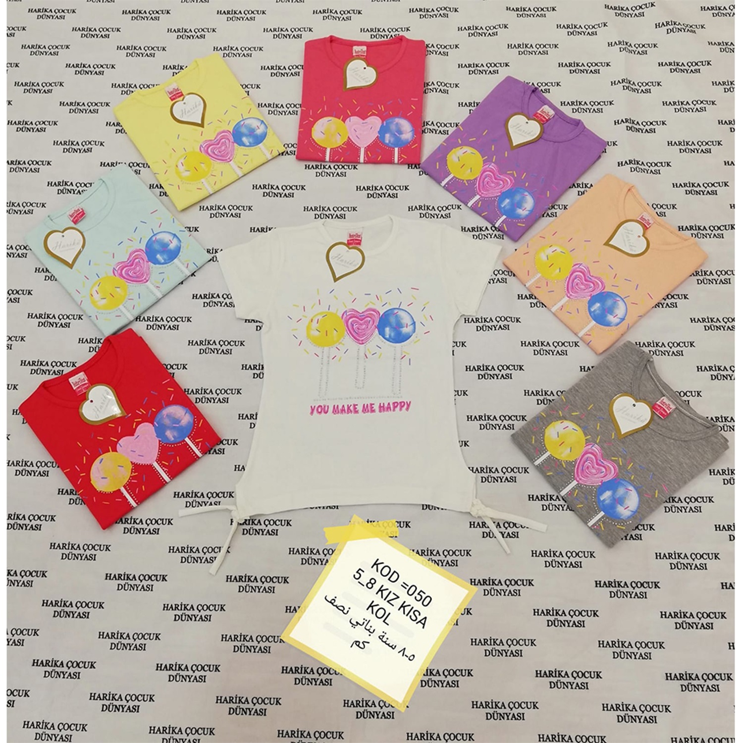 Harika Çocuk 050 Kız Çocuk Baskılı Kısa Kol Tişört 5-8 Yaş