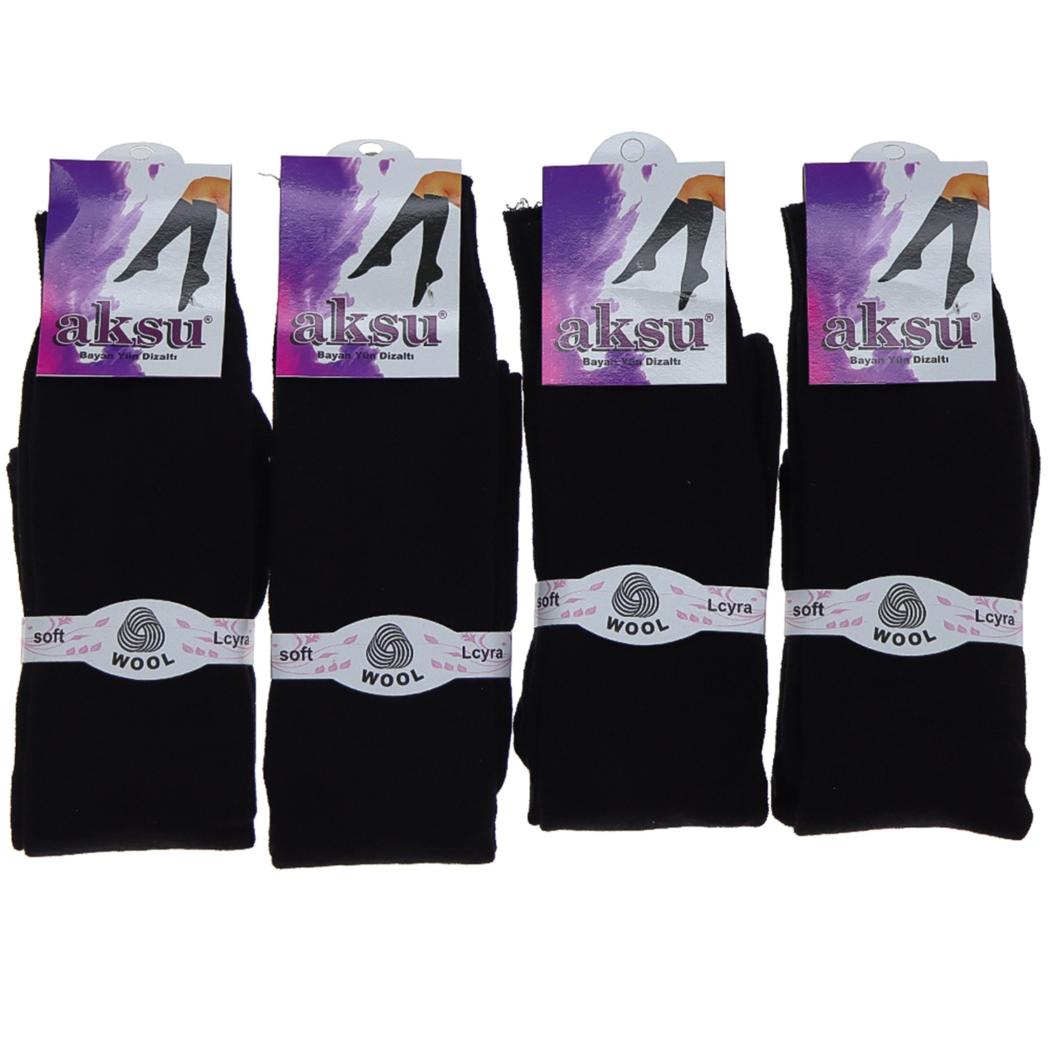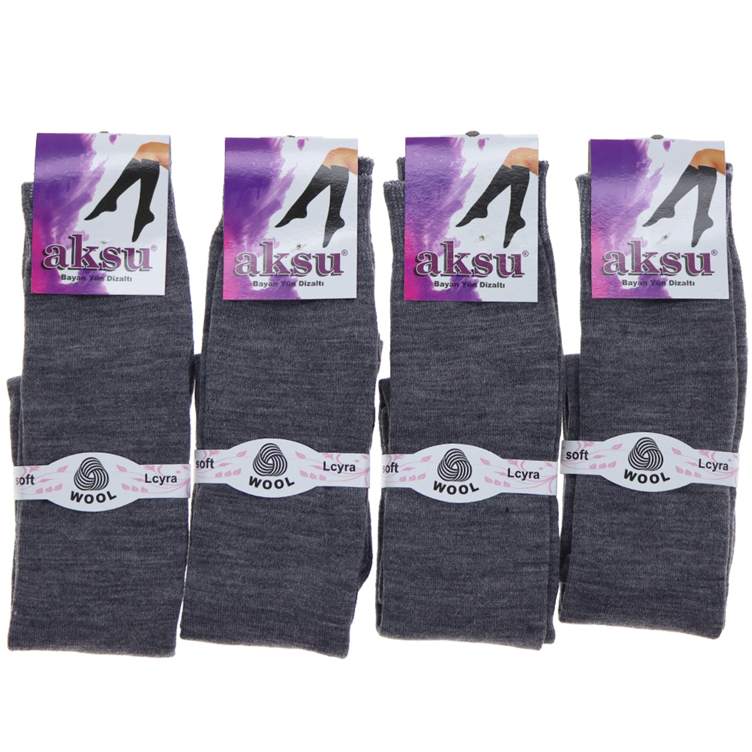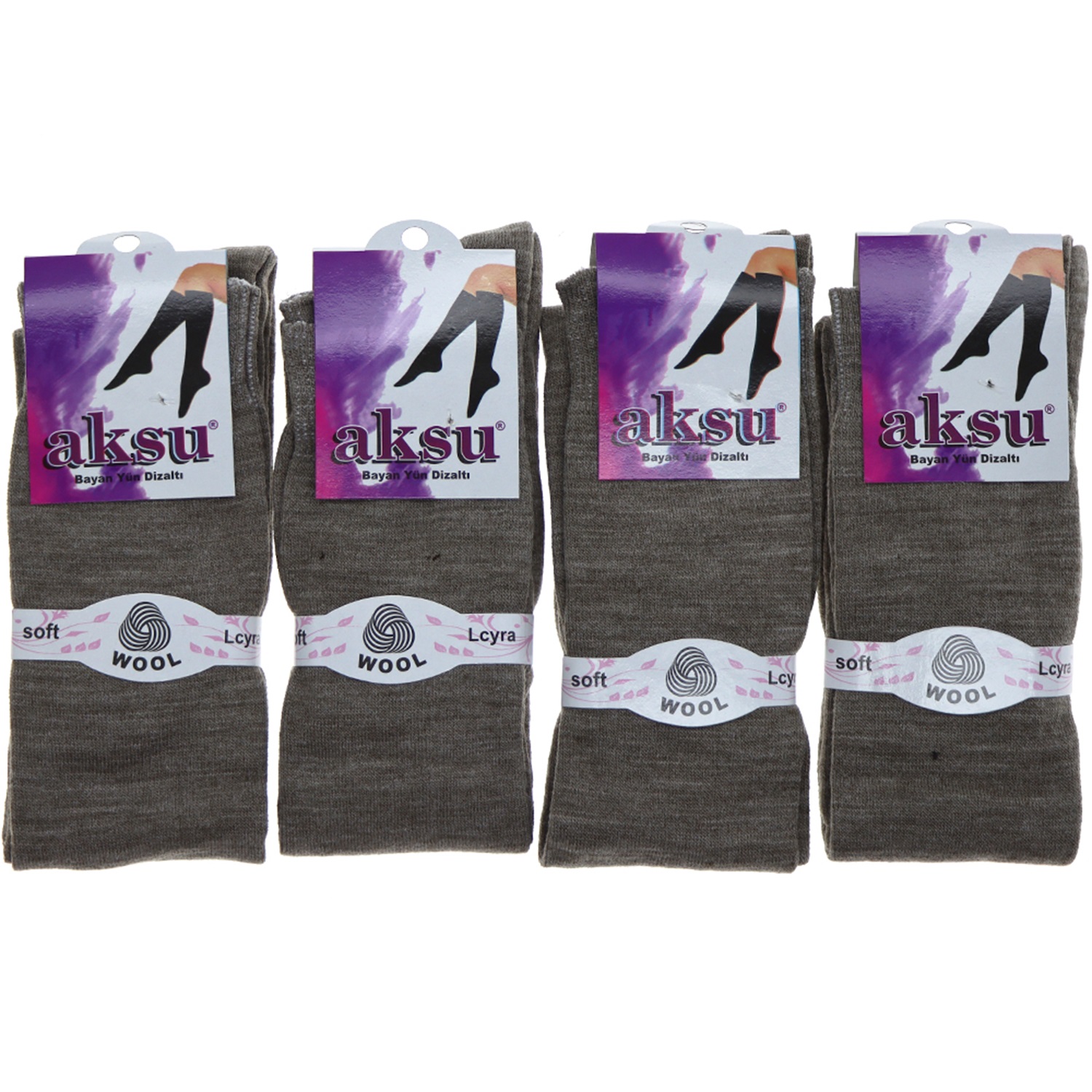Aksu Bayan Likralı Yün Akrilik Anne Dizaltı Çorap 12 Li